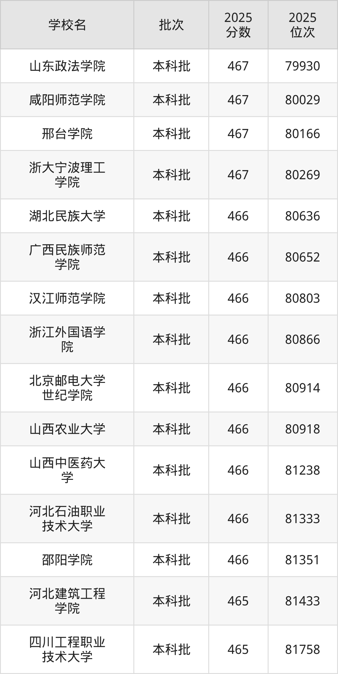 这些都是2026年高考物理类80388名~81373名考生可以报考的大学,更多学校名单如下表所示:
