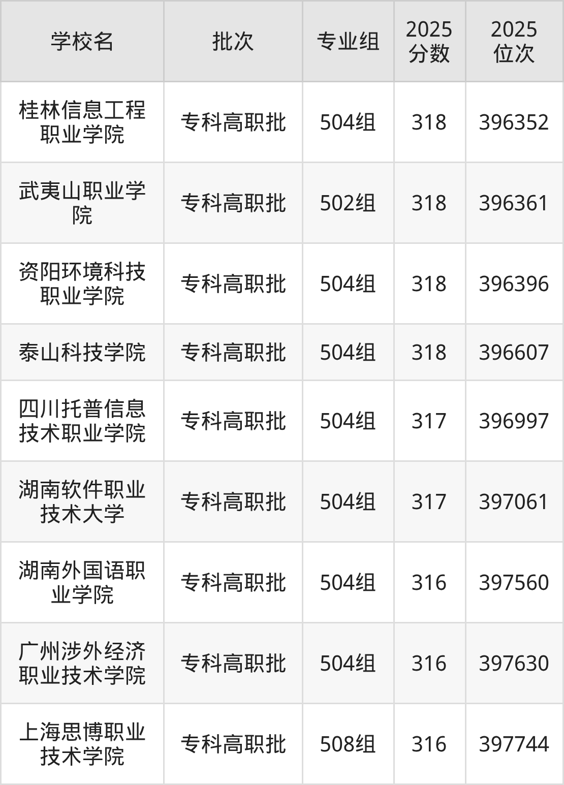 2025年广东高考物理类317分(396767名~397377名)能上的大学有四川托普信息技术职业学院504组、湖南软件职业技术大学504组。