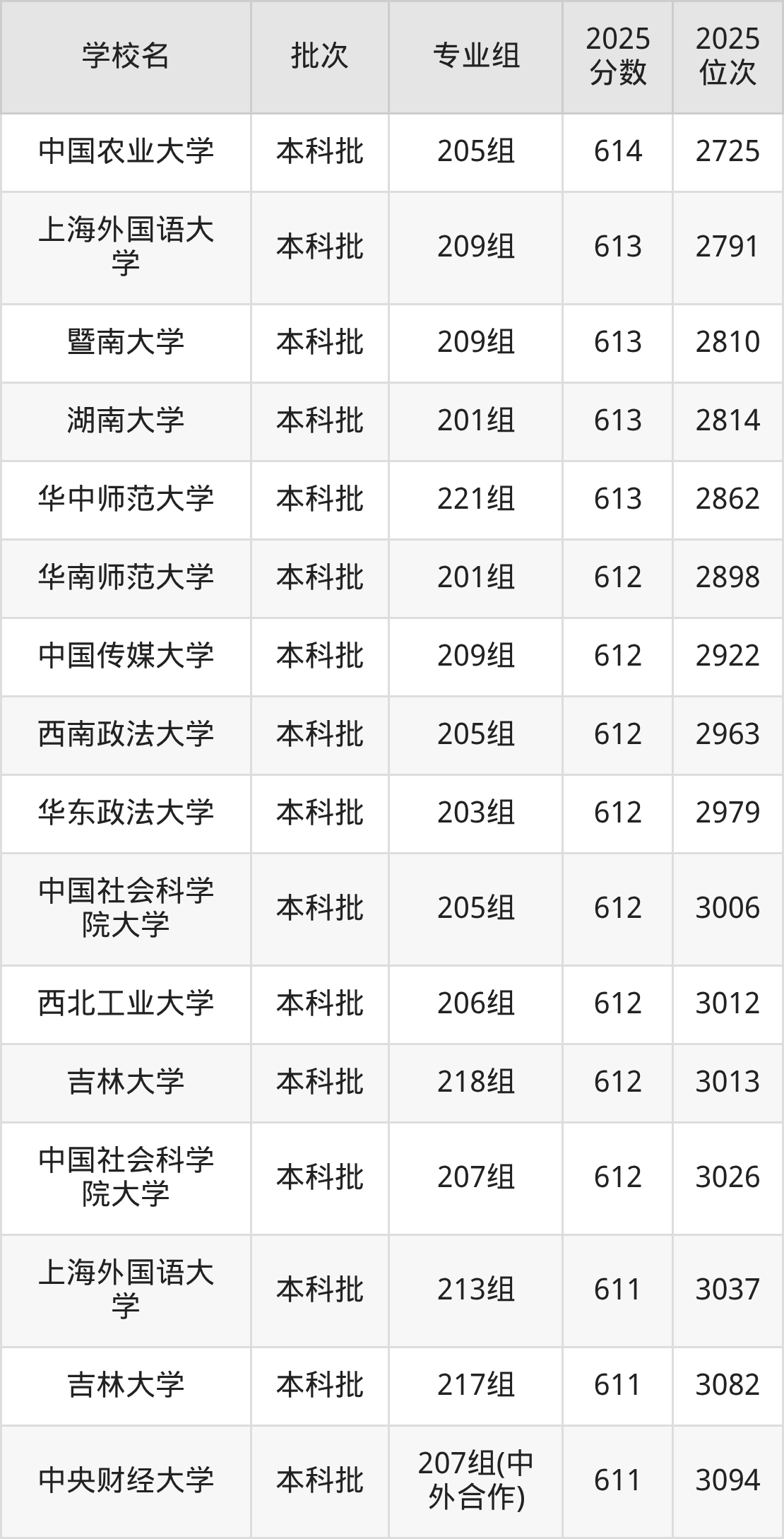 这些都是2026年高考历史类2473名~2597名考生可以报考的大学,更多学校名单如下表所示: