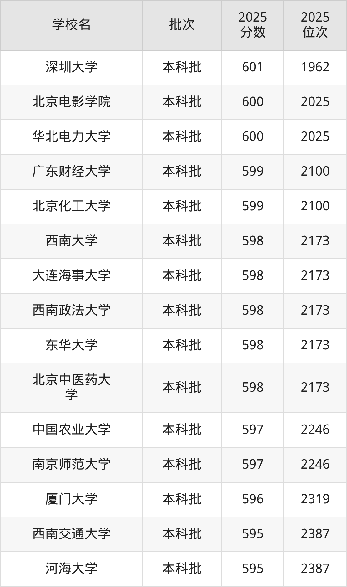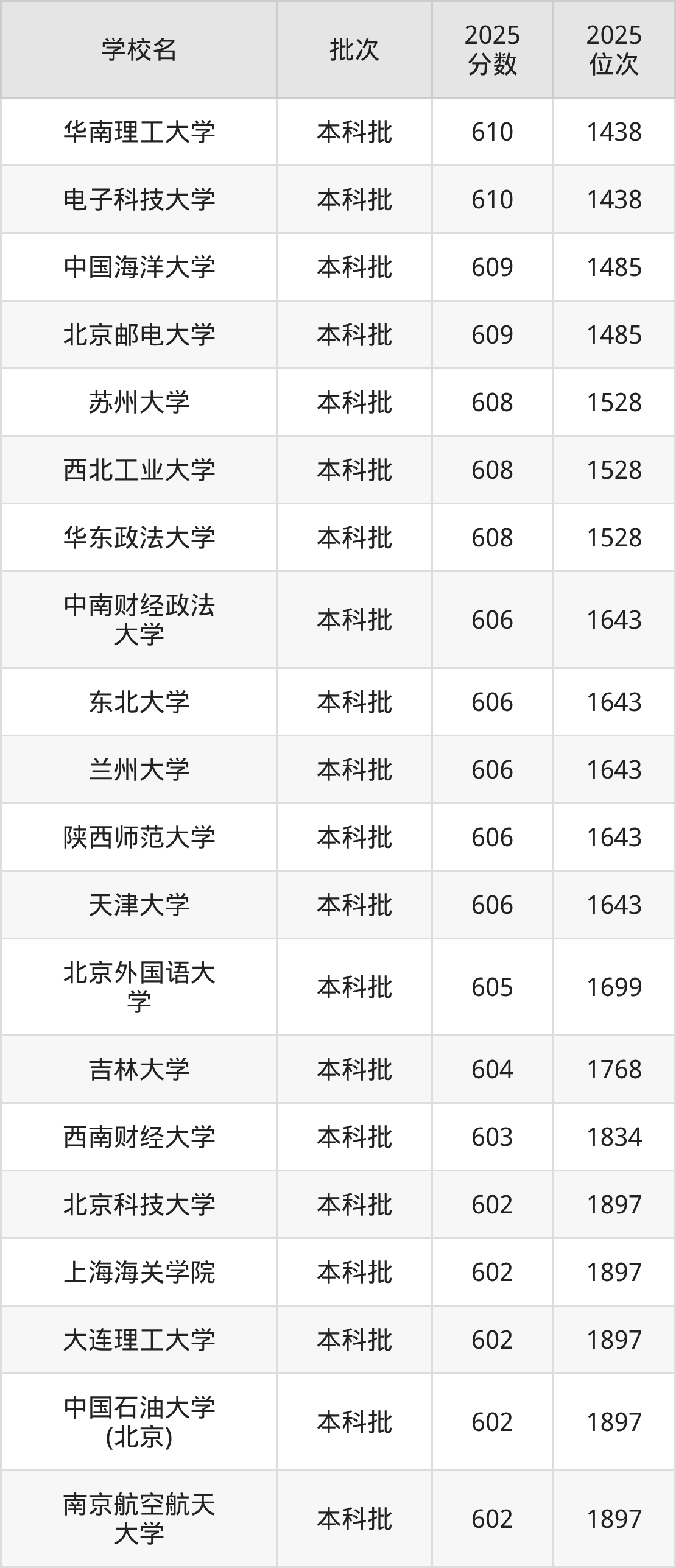 由于高考录取分数线历年波动较大,因此本文以该分数对应的位次排名为大家整理能上的大学名单。
