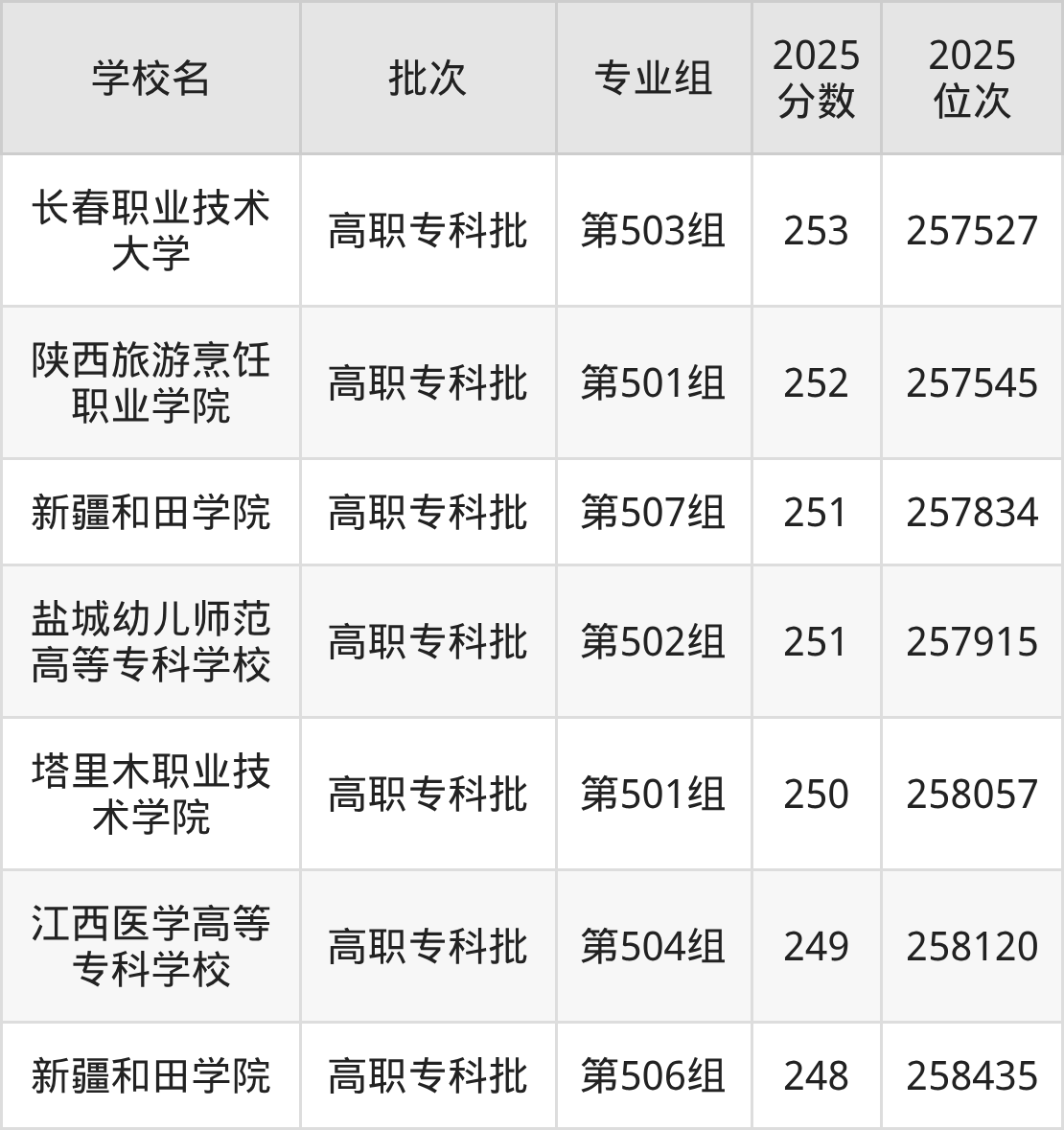 2025年江西高考物理类250分(257923名~258116名)能上的大学有塔里木职业技术学院第501组。
