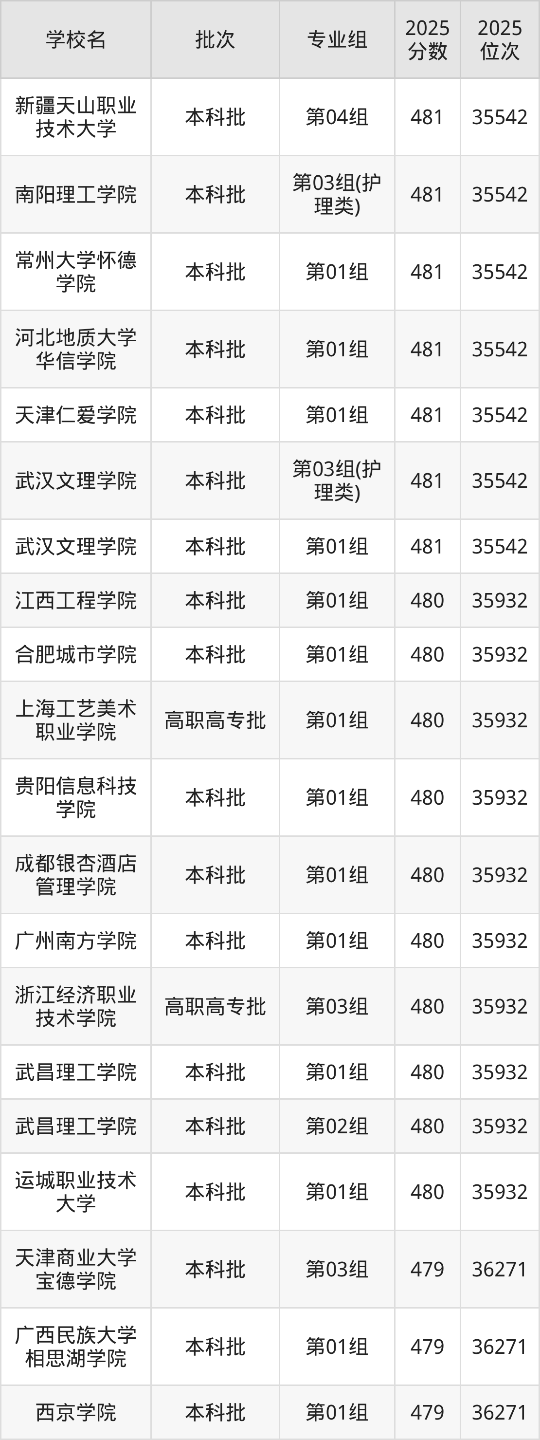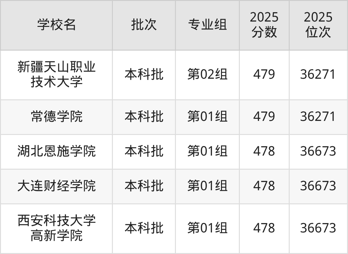 2025年湖北高考历史类479分(35933名~36271名)能上的大学有天津商业大学宝德学院第03组、常德学院第01组、广西民族大学相思湖学院第01组、西京学院第01组等。