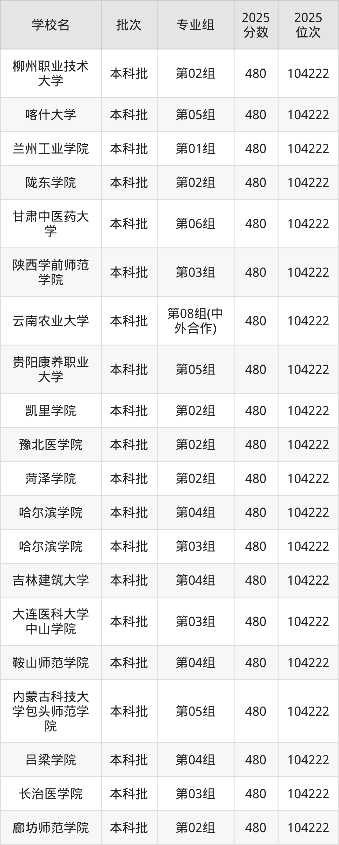 这些都是2026年高考物理类104223名~105123名考生可以报考的大学,更多学校名单如下表所示: