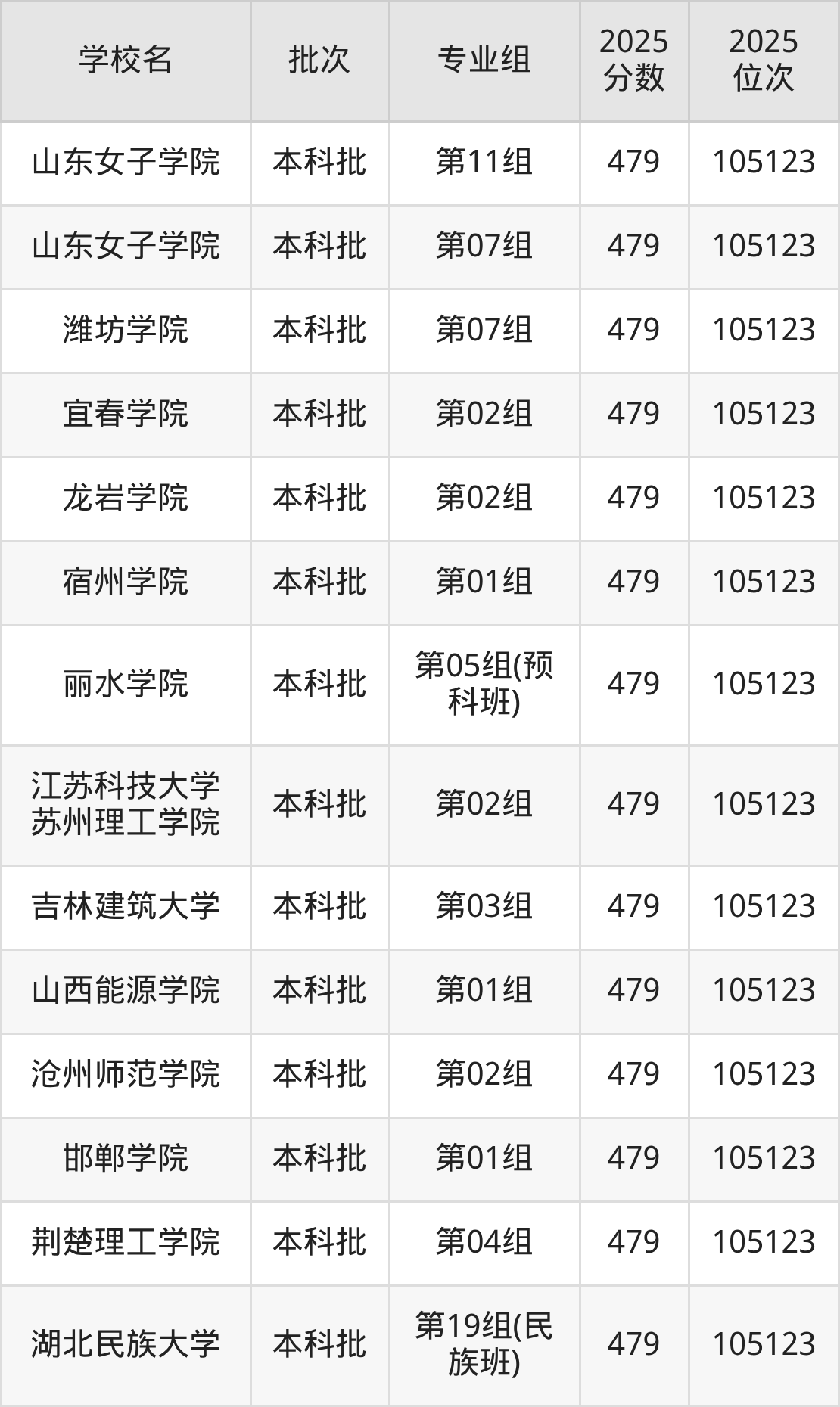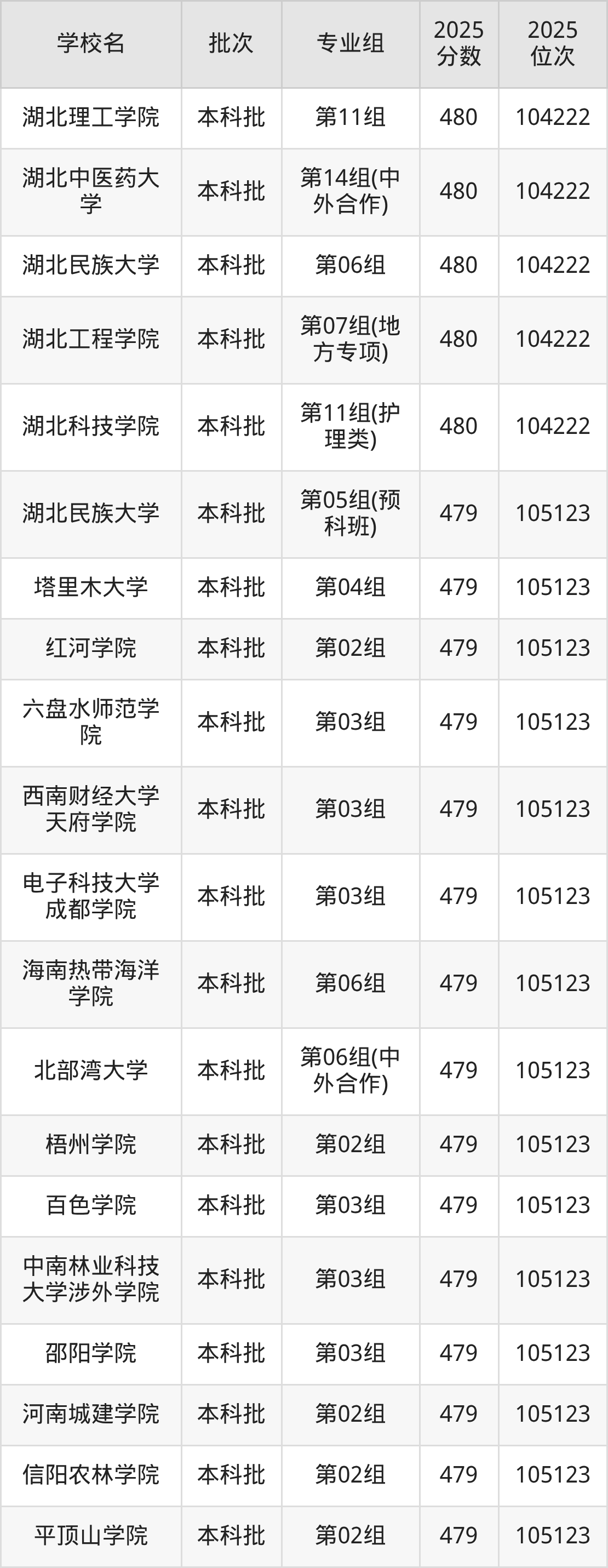 2025年湖北高考物理类479分(104223名~105123名)能上的大学有湖北民族大学第05组(预科班)、湖北民族大学第19组(民族班)、荆楚理工学院第04组、邯郸学院第01组等。