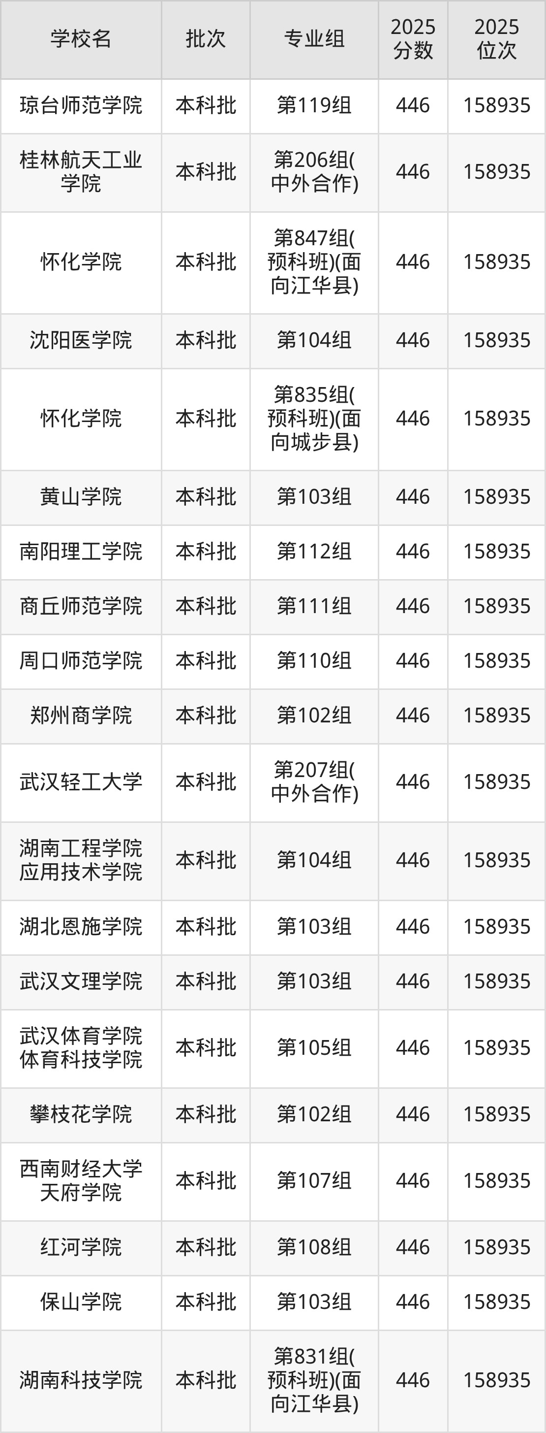这些都是2026年高考物理类158936名~160297名考生可以报考的大学,更多学校名单如下表所示: