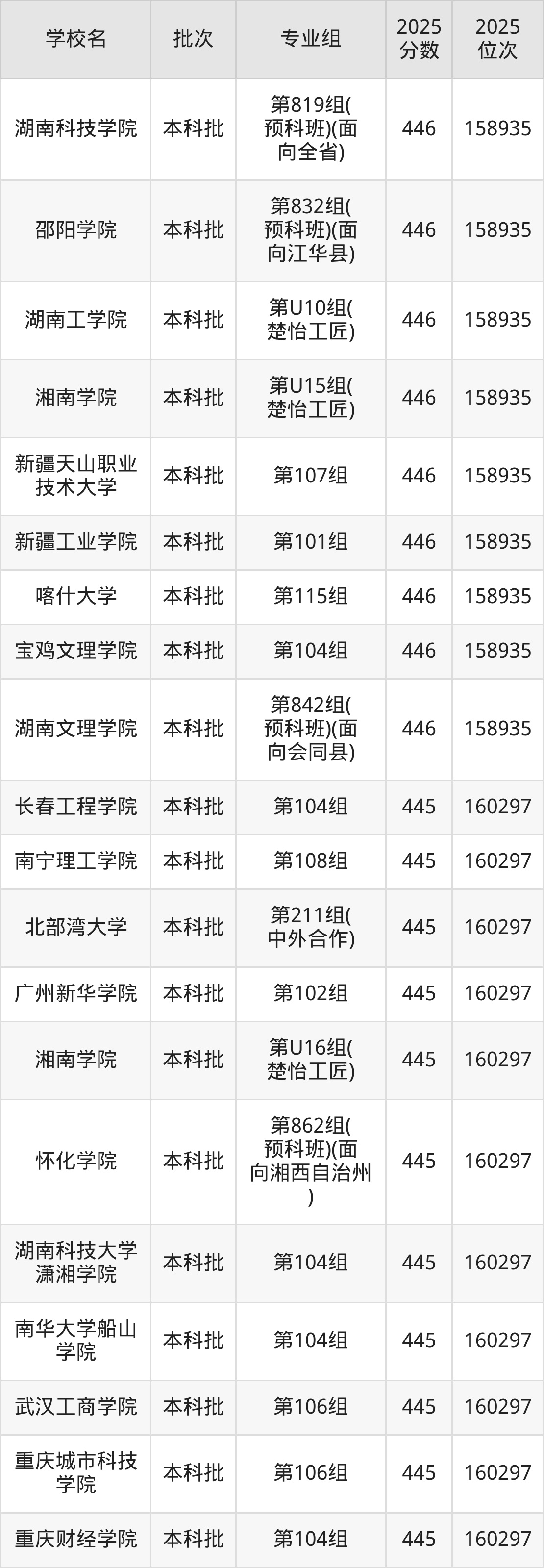 二、湖南445分位次排名能上的大学