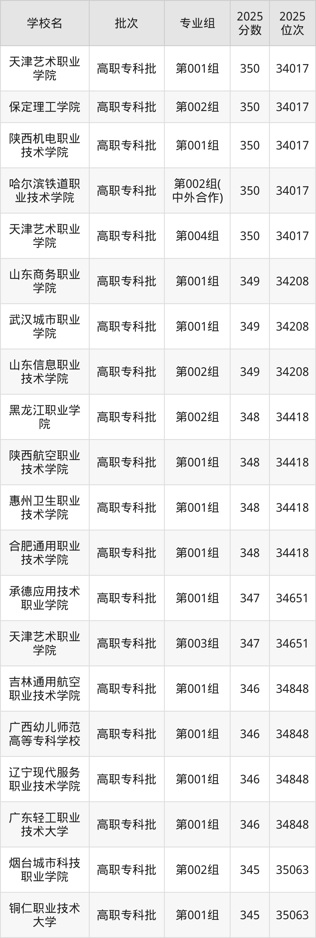 2025年黑龙江高考历史类347分(34419名~34651名)能上的大学有天津艺术职业学院第003组、承德应用技术职业学院第001组。