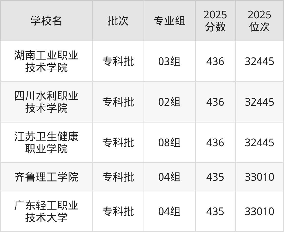2025年江苏高考物理类435分(32446名~33010名)能上的大学有广东轻工职业技术大学04组、齐鲁理工学院04组。
