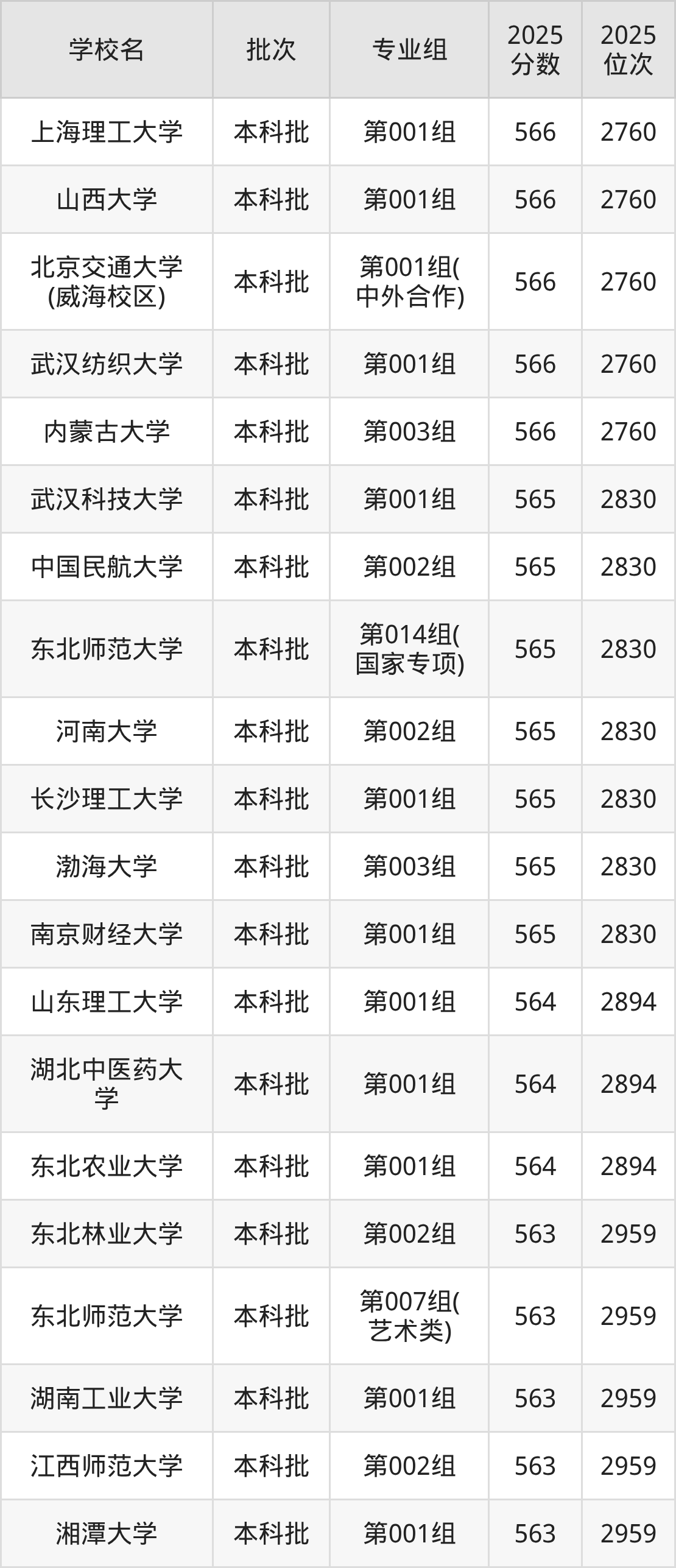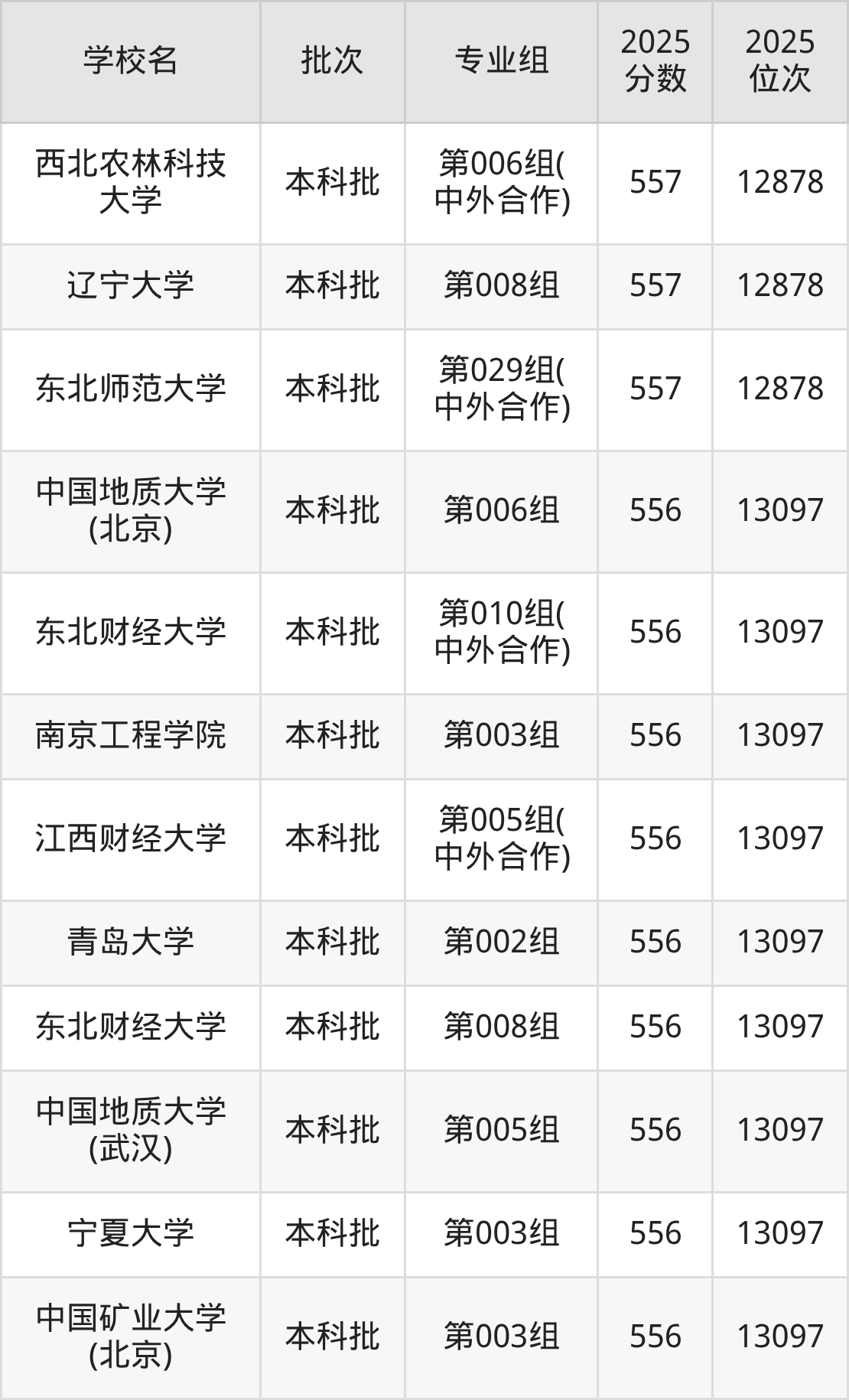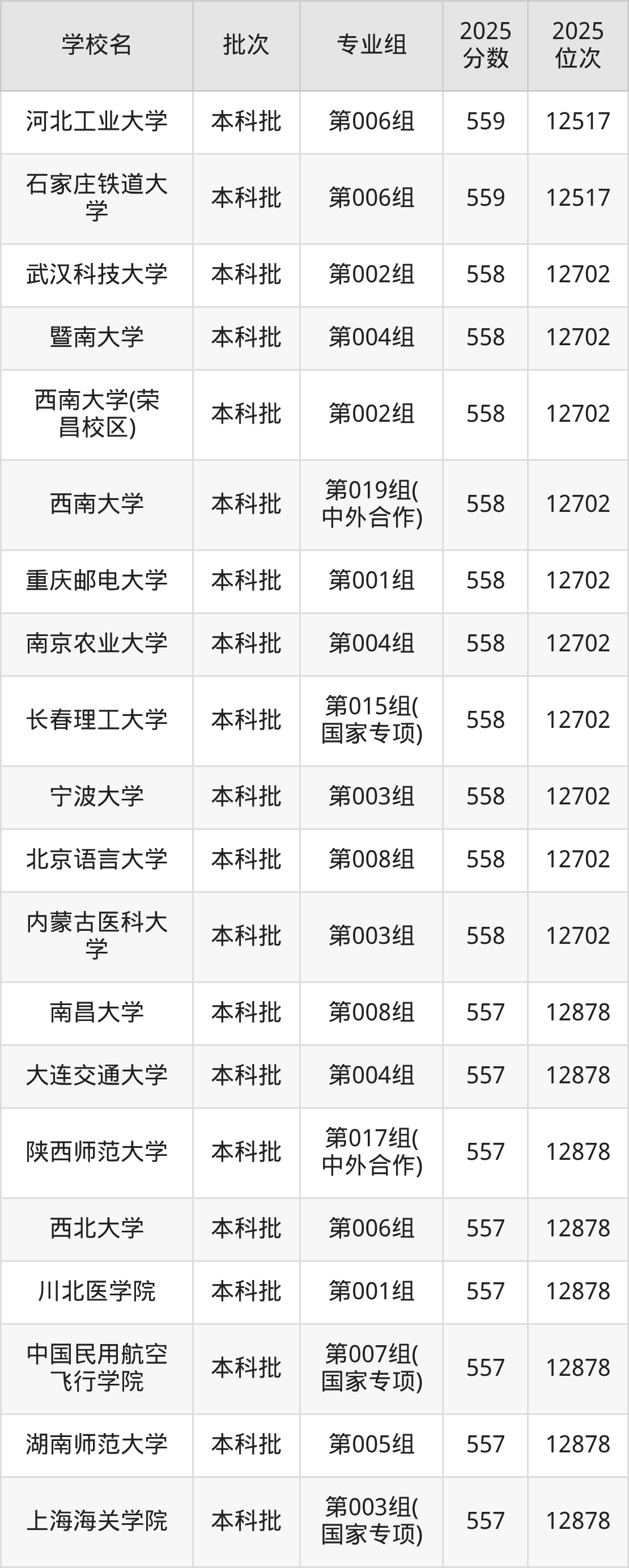 2025年吉林高考物理类558分(12518名~12702名)能上的大学有北京语言大学第008组、内蒙古医科大学第003组、长春理工大学第015组(国家专项)、南京农业大学第004组等。