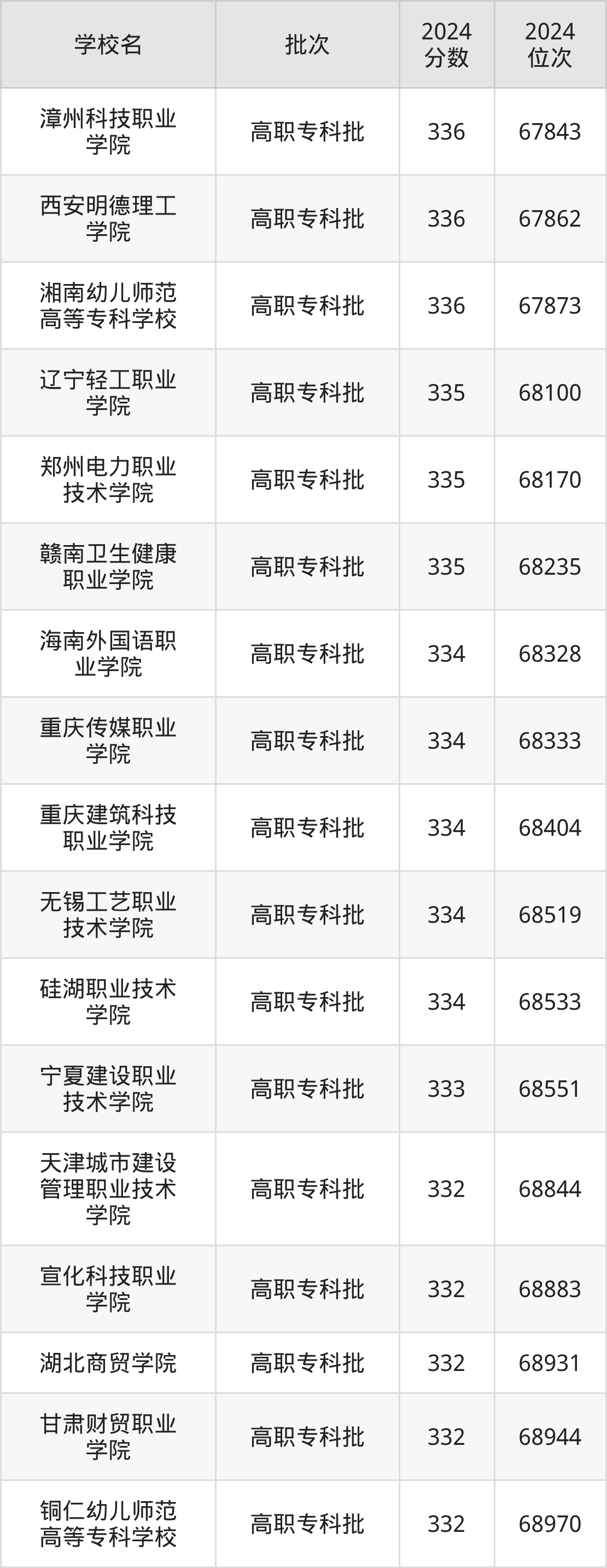 2024年陕西高考文科334分(68324名~68545名)能上的大学有硅湖职业技术学院、无锡工艺职业技术学院、海南外国语职业学院、重庆传媒职业学院等。