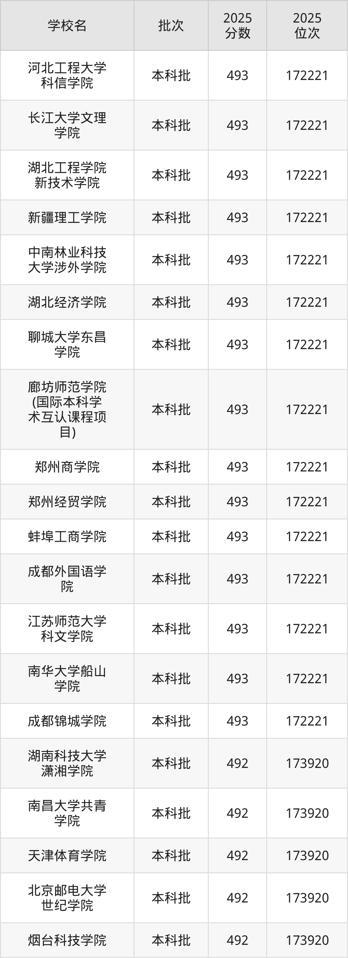 这些都是2026年高考物理类172222名~173920名考生可以报考的大学,更多学校名单如下表所示: