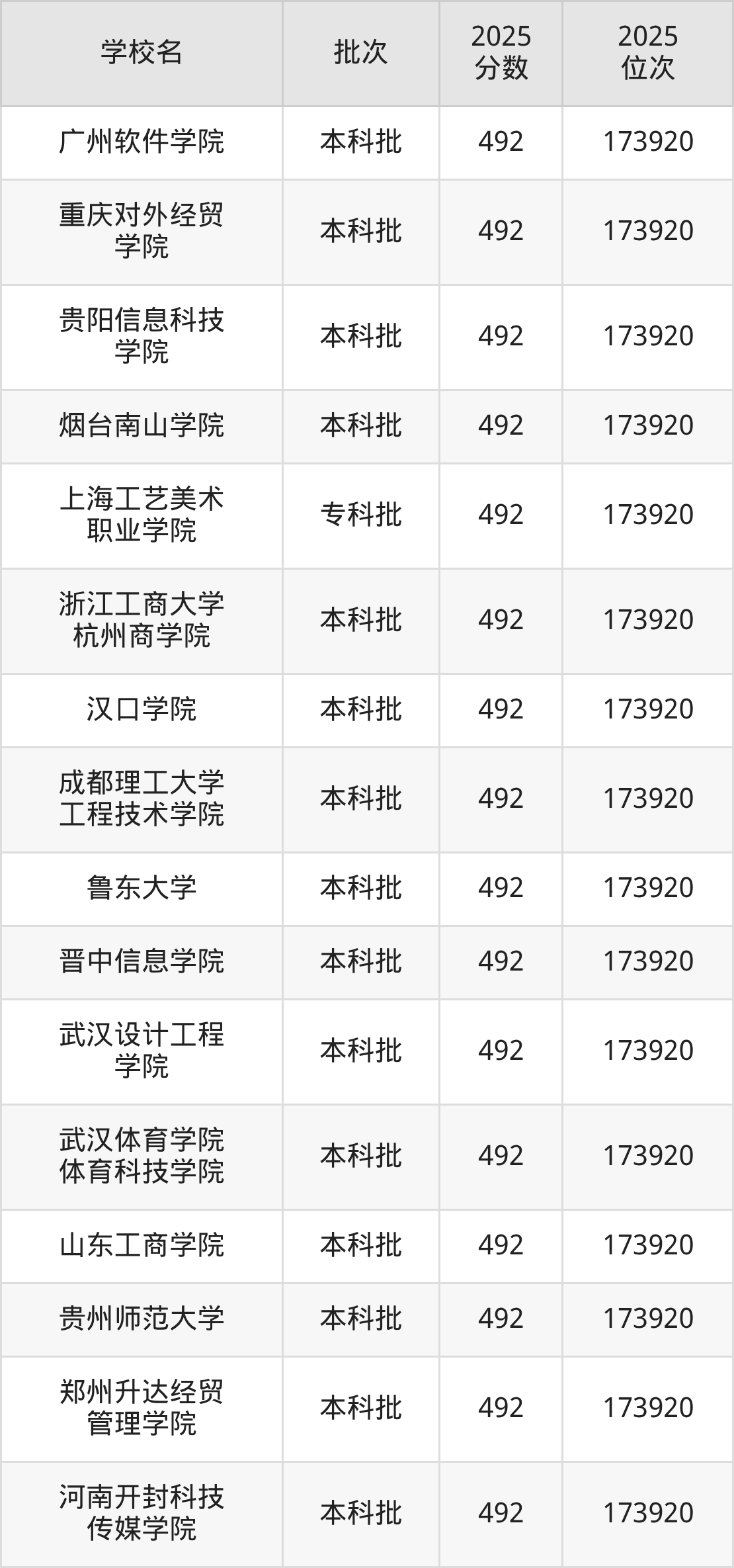 2025年河北高考物理类492分(172222名~173920名)能上的大学有山东工商学院、贵阳信息科技学院、浙江工商大学杭州商学院、上海工艺美术职业学院等。