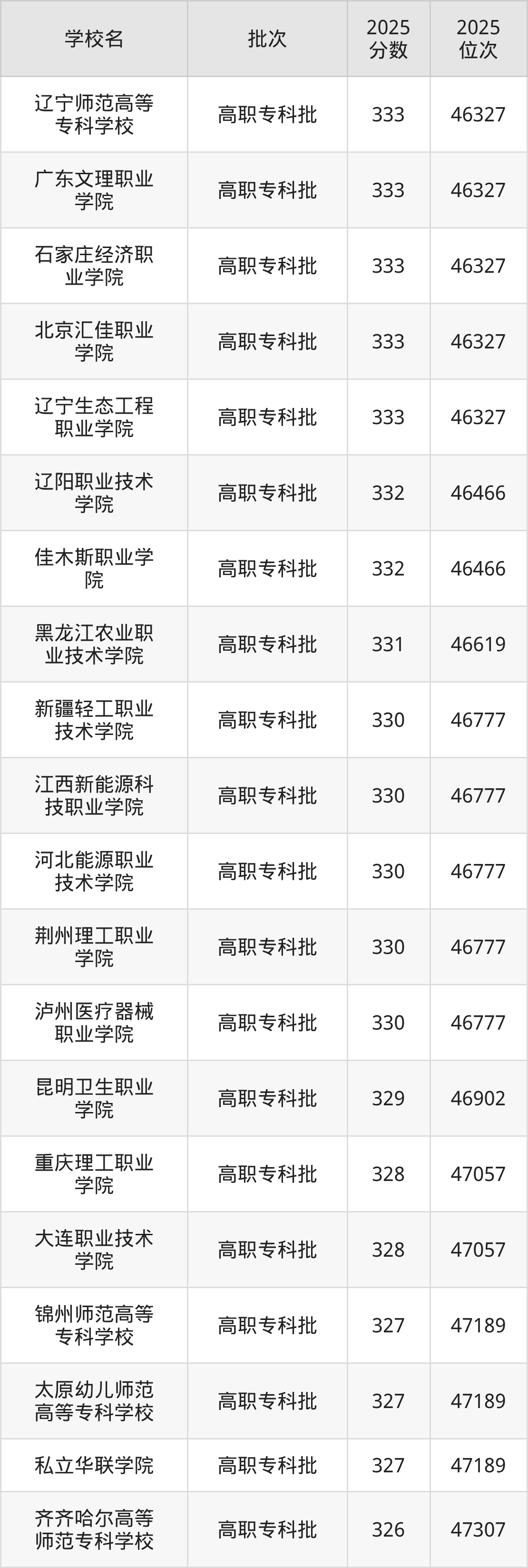 2025年辽宁高考历史类329分(46778名~46902名)能上的大学有昆明卫生职业学院。