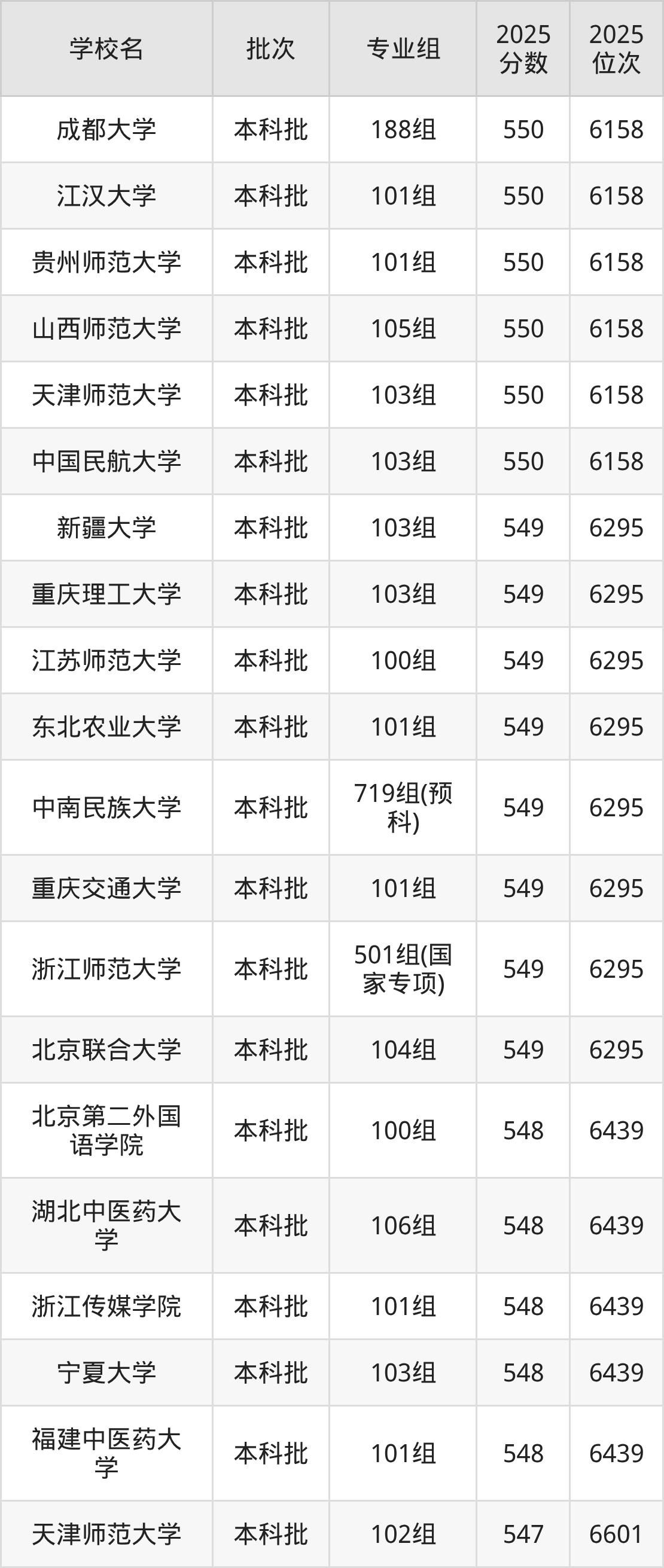 这些都是2026年高考历史类6602名~6748名考生可以报考的大学,更多学校名单如下表所示: