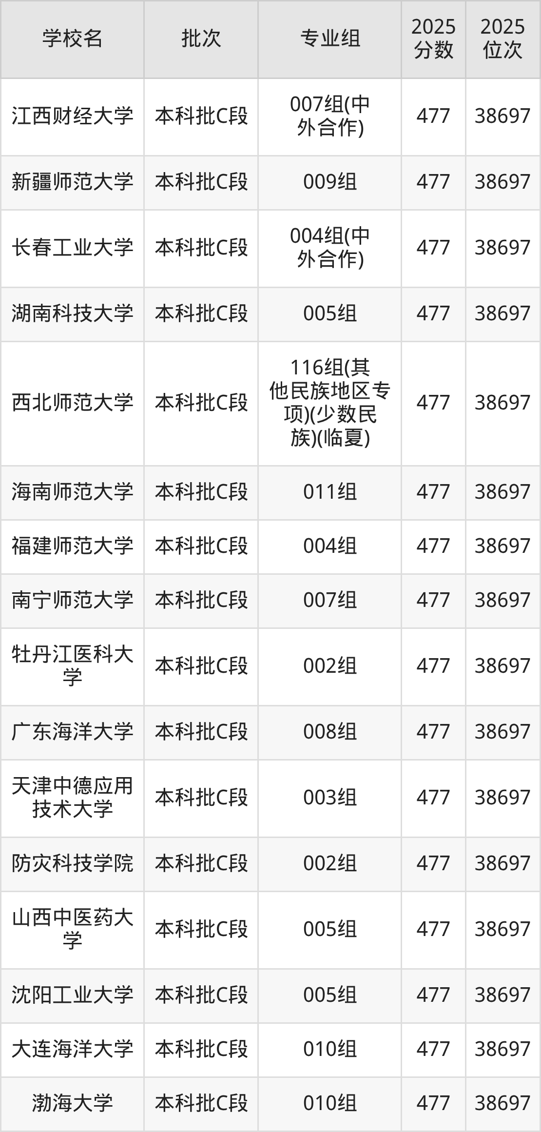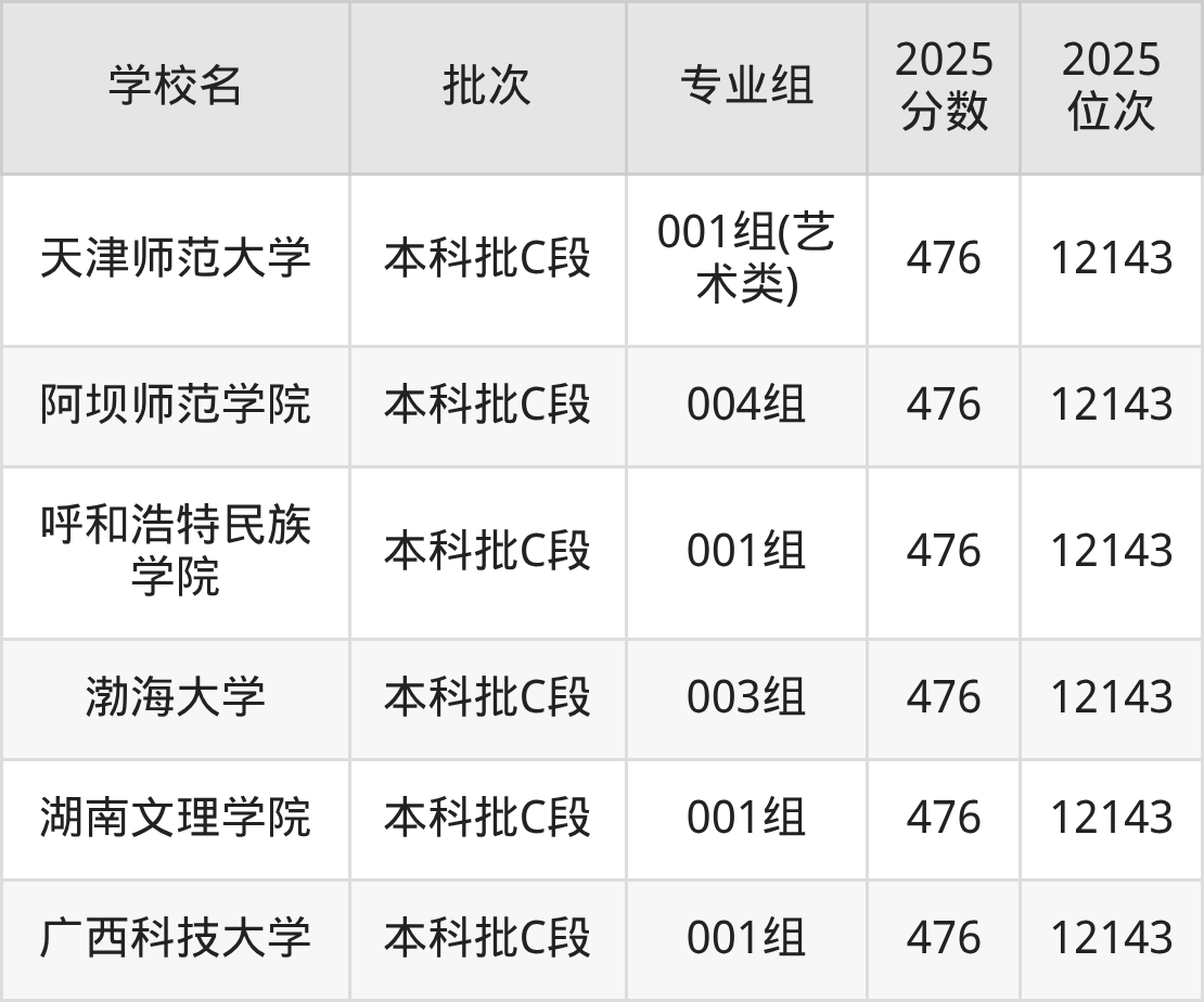 这些都是2026年高考历史类11597名~11765名考生可以报考的大学,更多学校名单如下表所示: