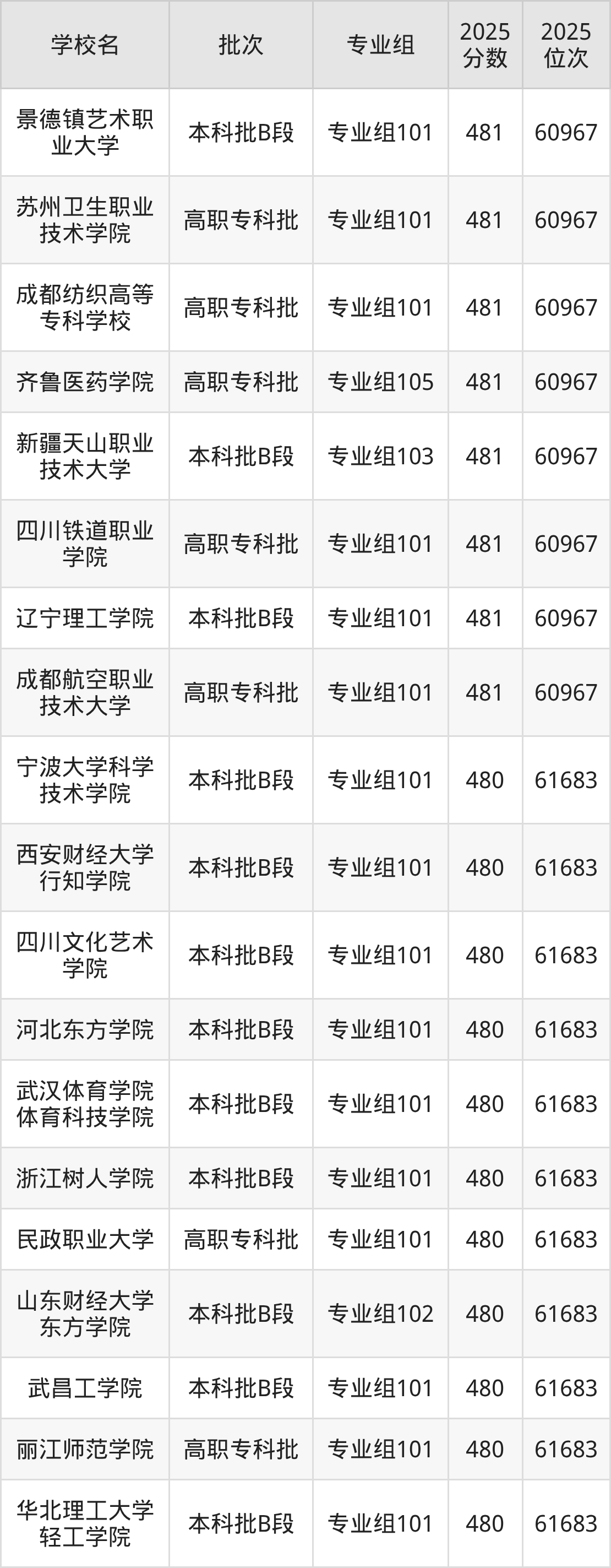 2025年四川高考历史类480分(60968名~61683名)能上的大学有四川文化艺术学院专业组101、华北理工大学轻工学院专业组101、西安财经大学行知学院专业组101、武昌工学院专业组101等。