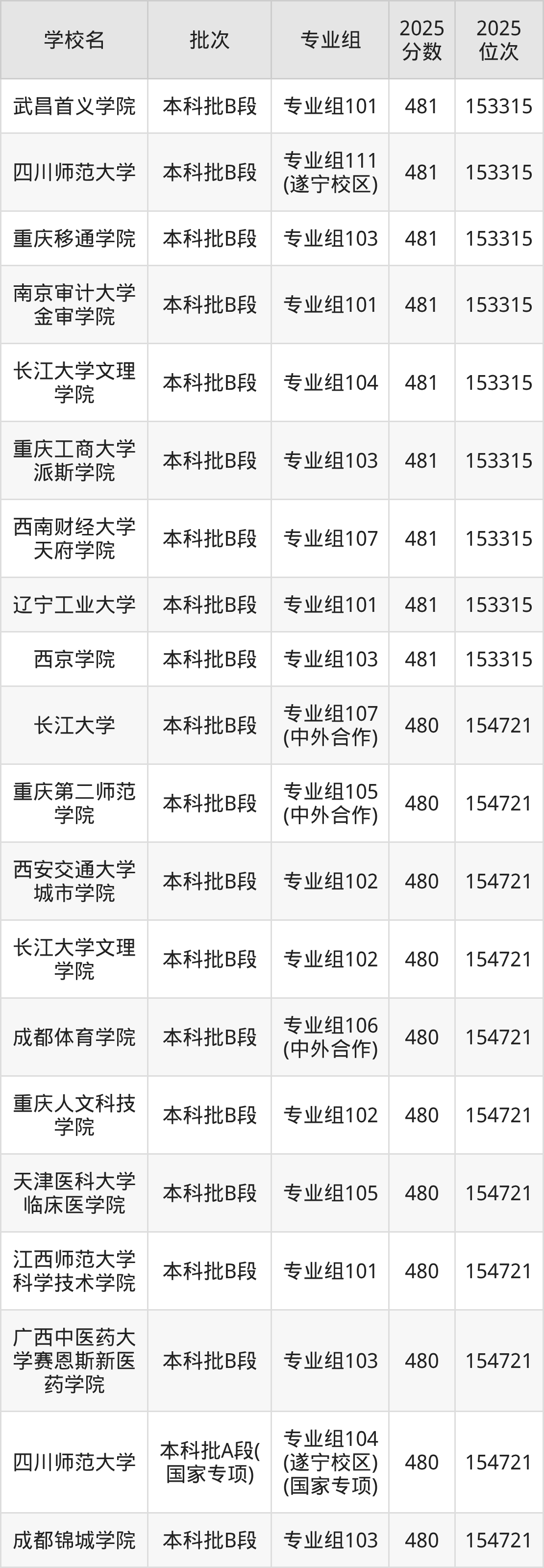 二、四川480分位次排名能上的大学