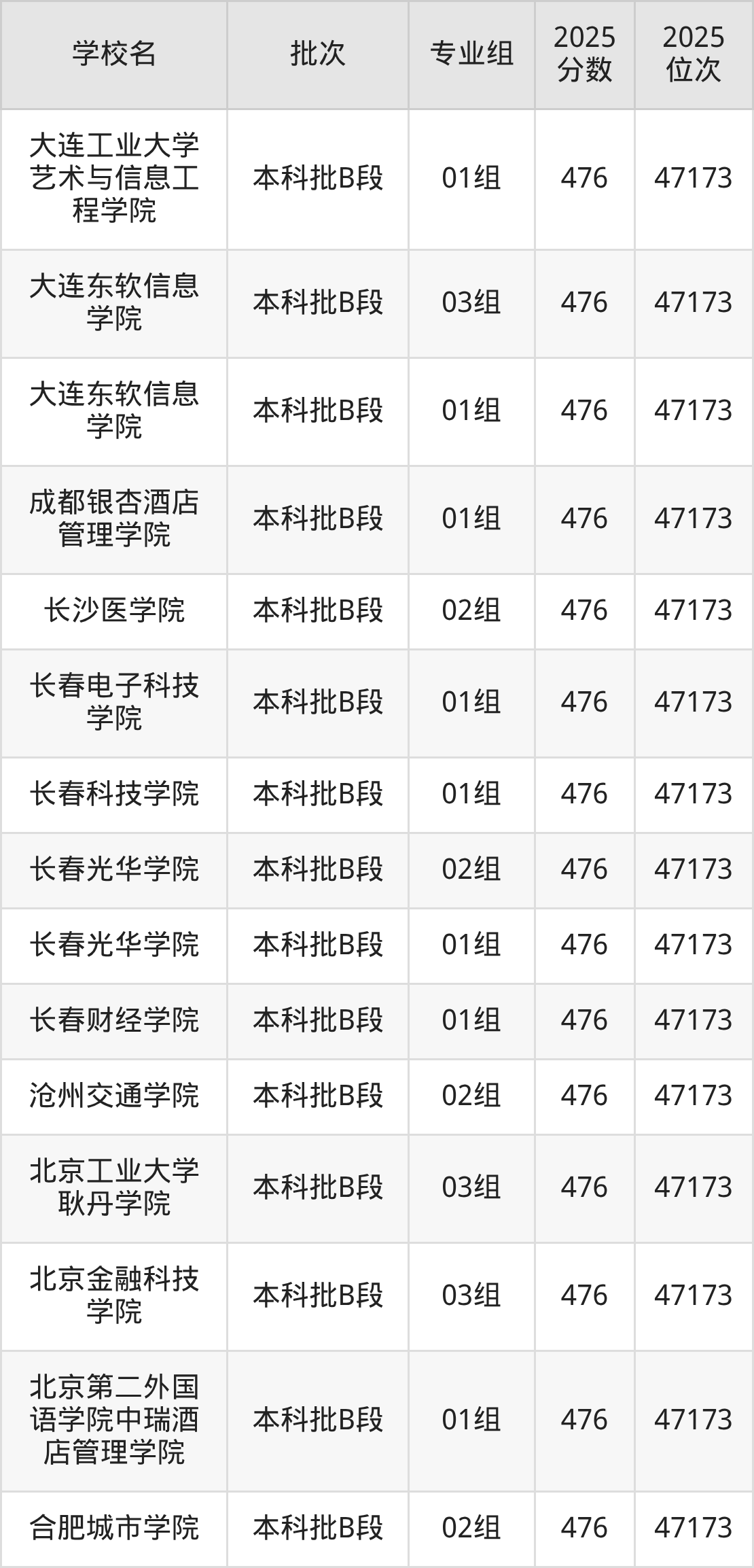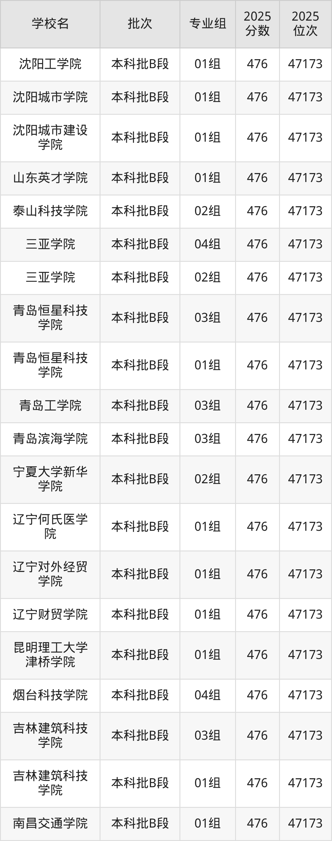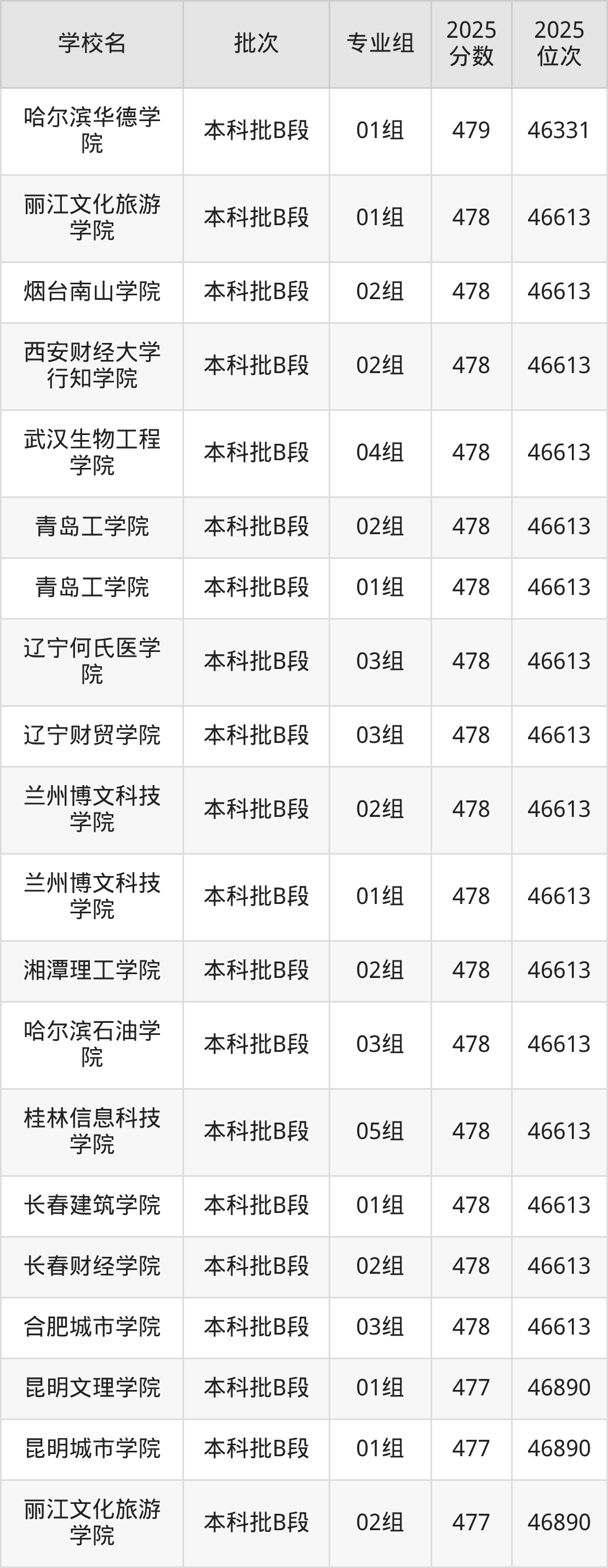 这些都是2026年高考46614名~46890名考生可以报考的大学,更多学校名单如下表所示: