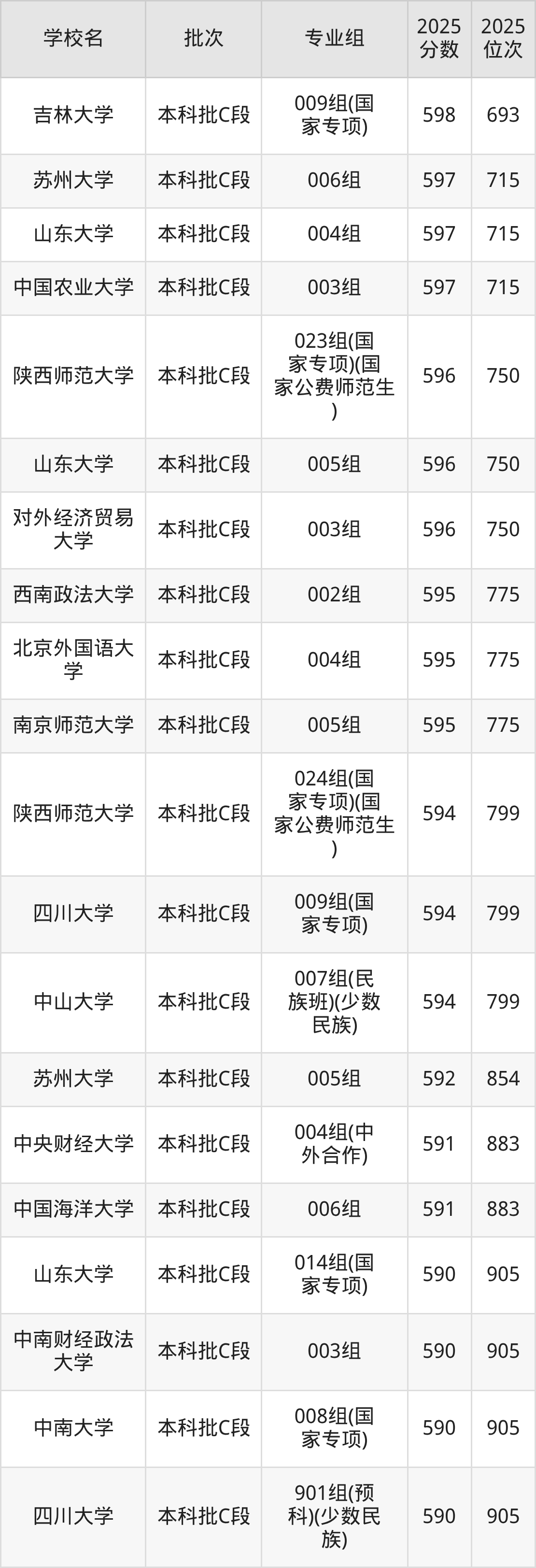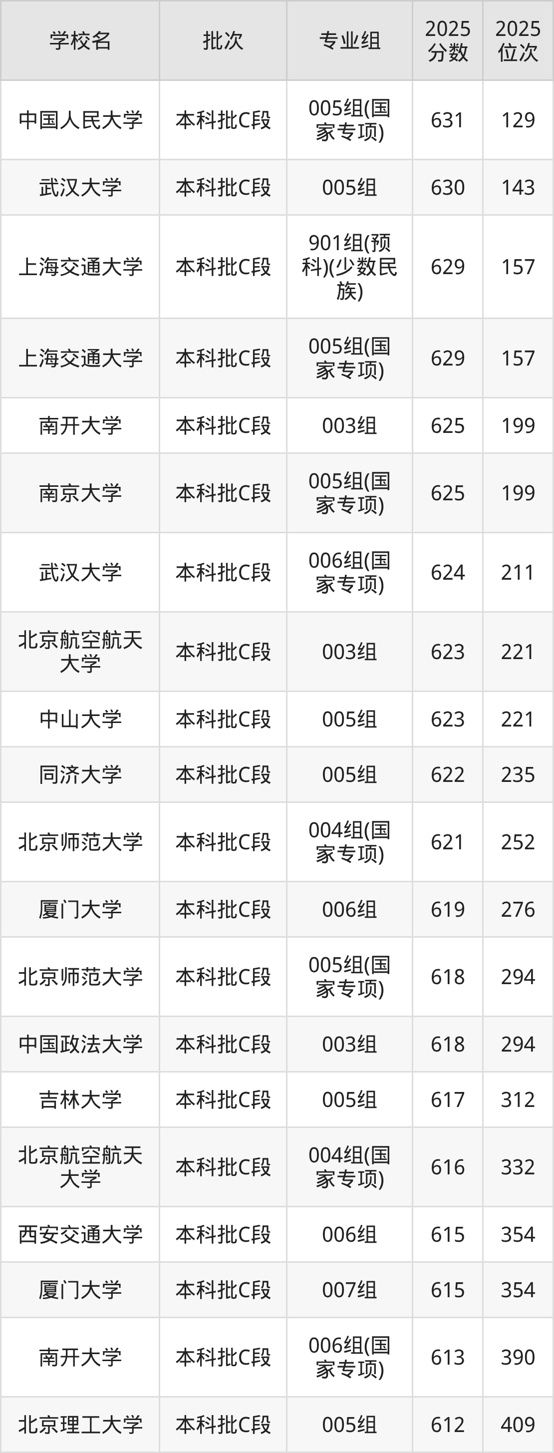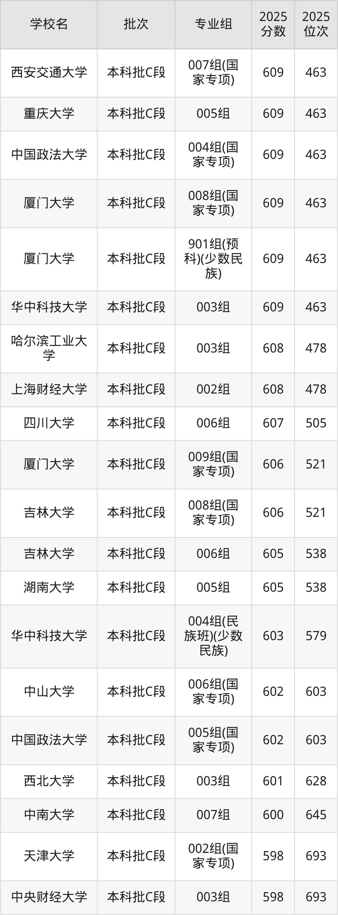这些都是2026年高考历史类629名~645名考生可以报考的大学,更多学校名单如下表所示: