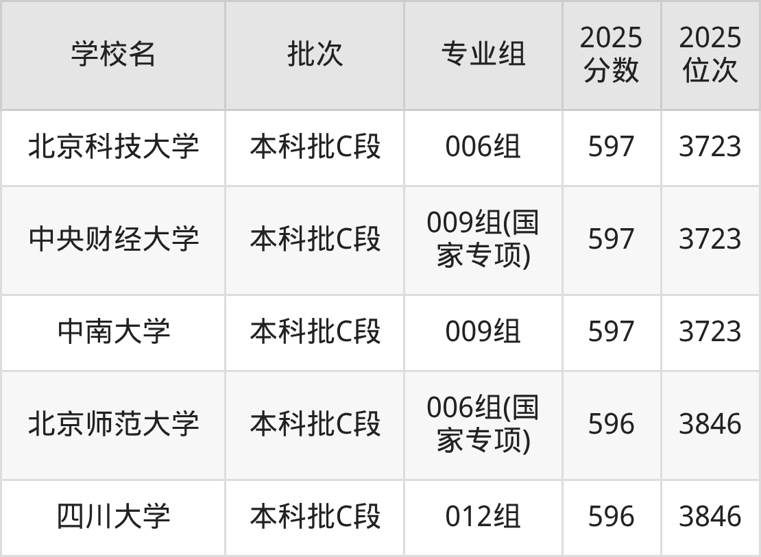 另外录取位次低于该区间(较稳妥)的有天津大学002组(国家专项)(693名)、中央财经大学003组(693名)等;录取位次高于该区间(可冲)的有西北大学003组(628名)、中国政法大学005组(国家专项)(603名)等。