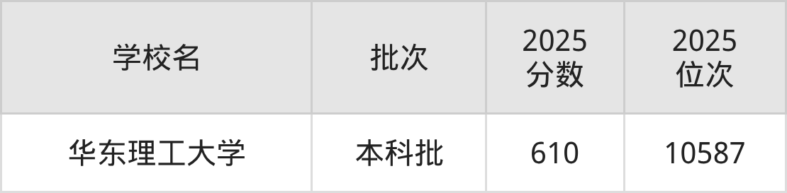 2025年辽宁高考物理类610分(10279名~10587名)能上的大学有华东理工大学。