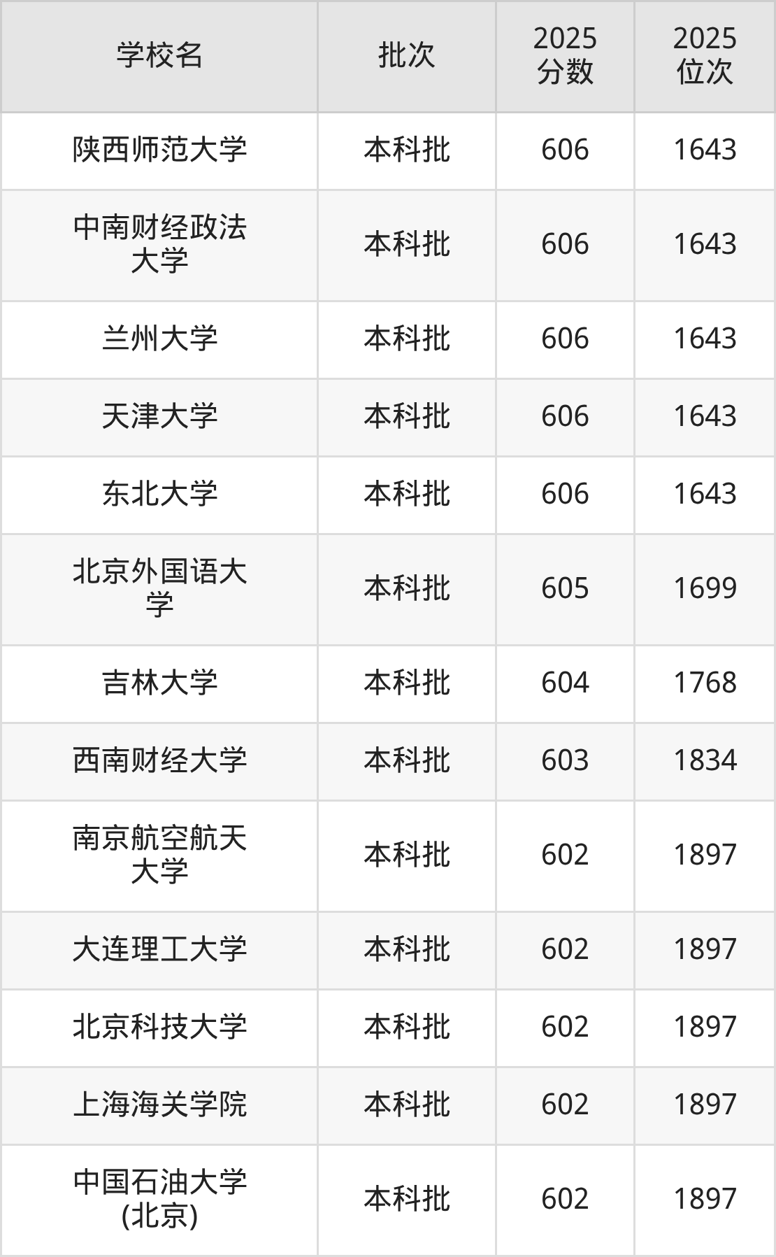 由于高考录取分数线历年波动较大,因此本文以该分数对应的位次排名为大家整理能上的大学名单。