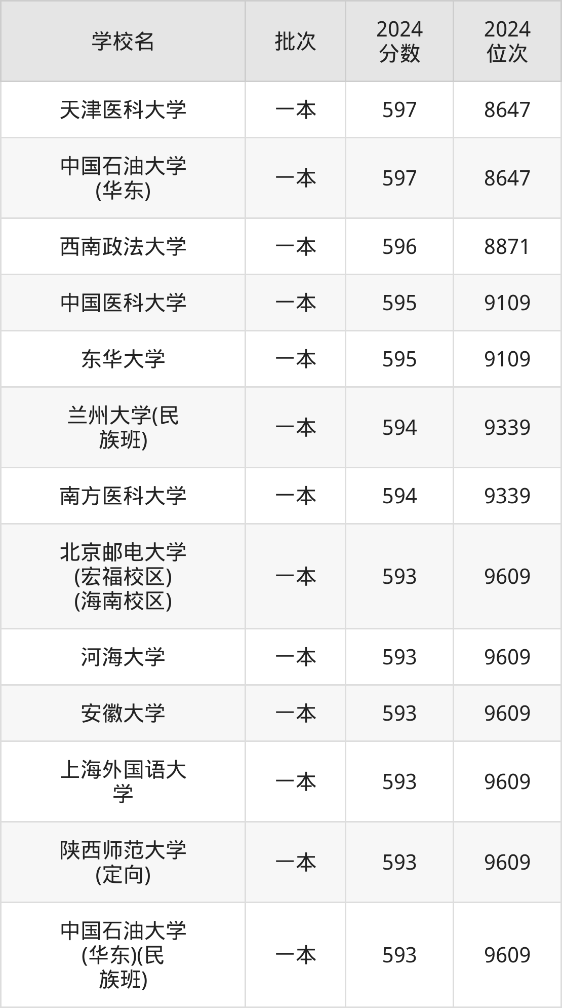 这些都是2025年高考文科3932名~4078名考生可以报考的大学,更多学校名单如下表所示: