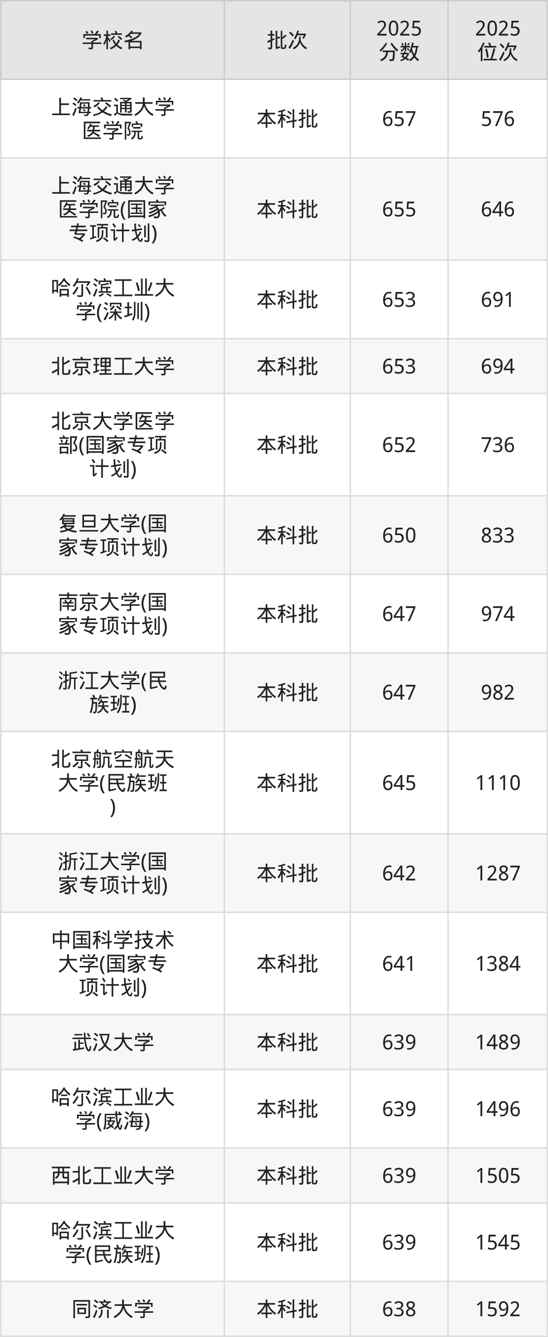 2025年贵州高考物理类645分(1073名~1146名)能上的大学有北京航空航天大学(民族班)。