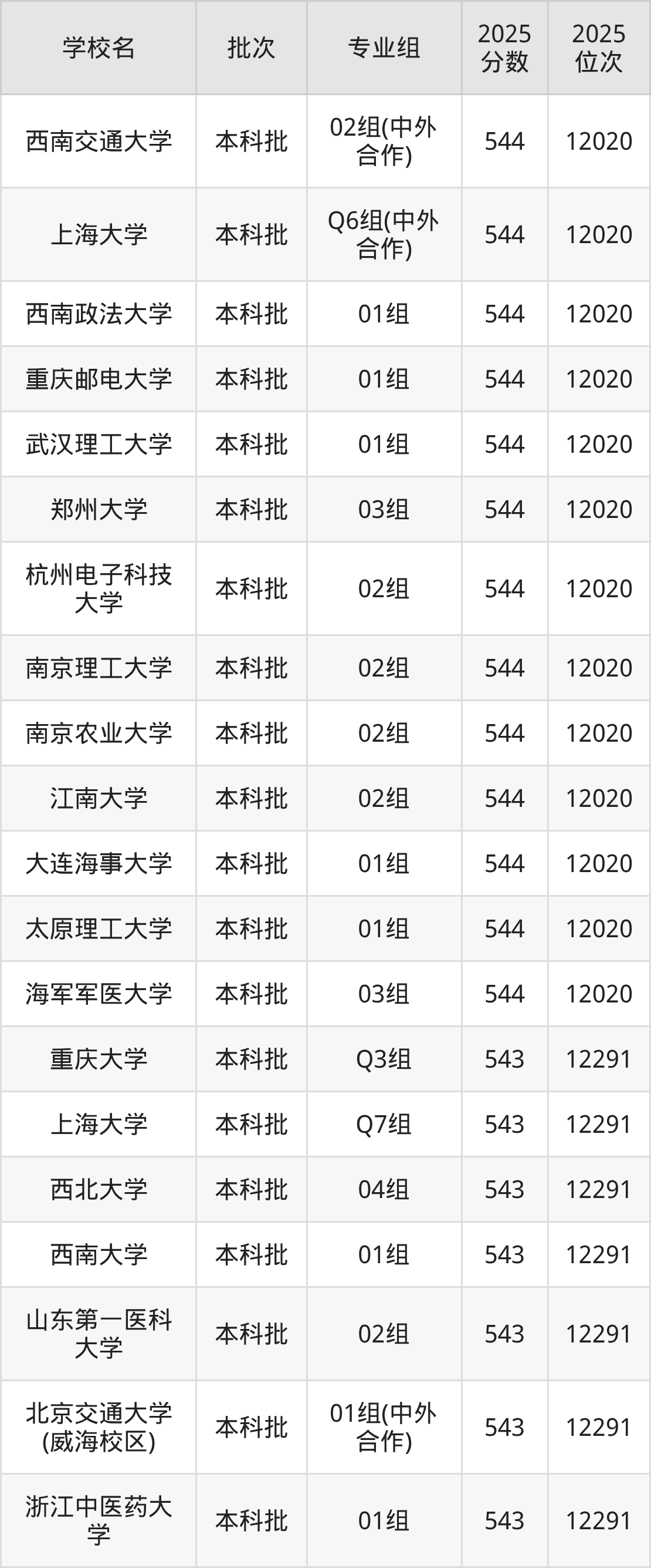 这些都是2026年高考12292名~12532名考生可以报考的大学,更多学校名单如下表所示: