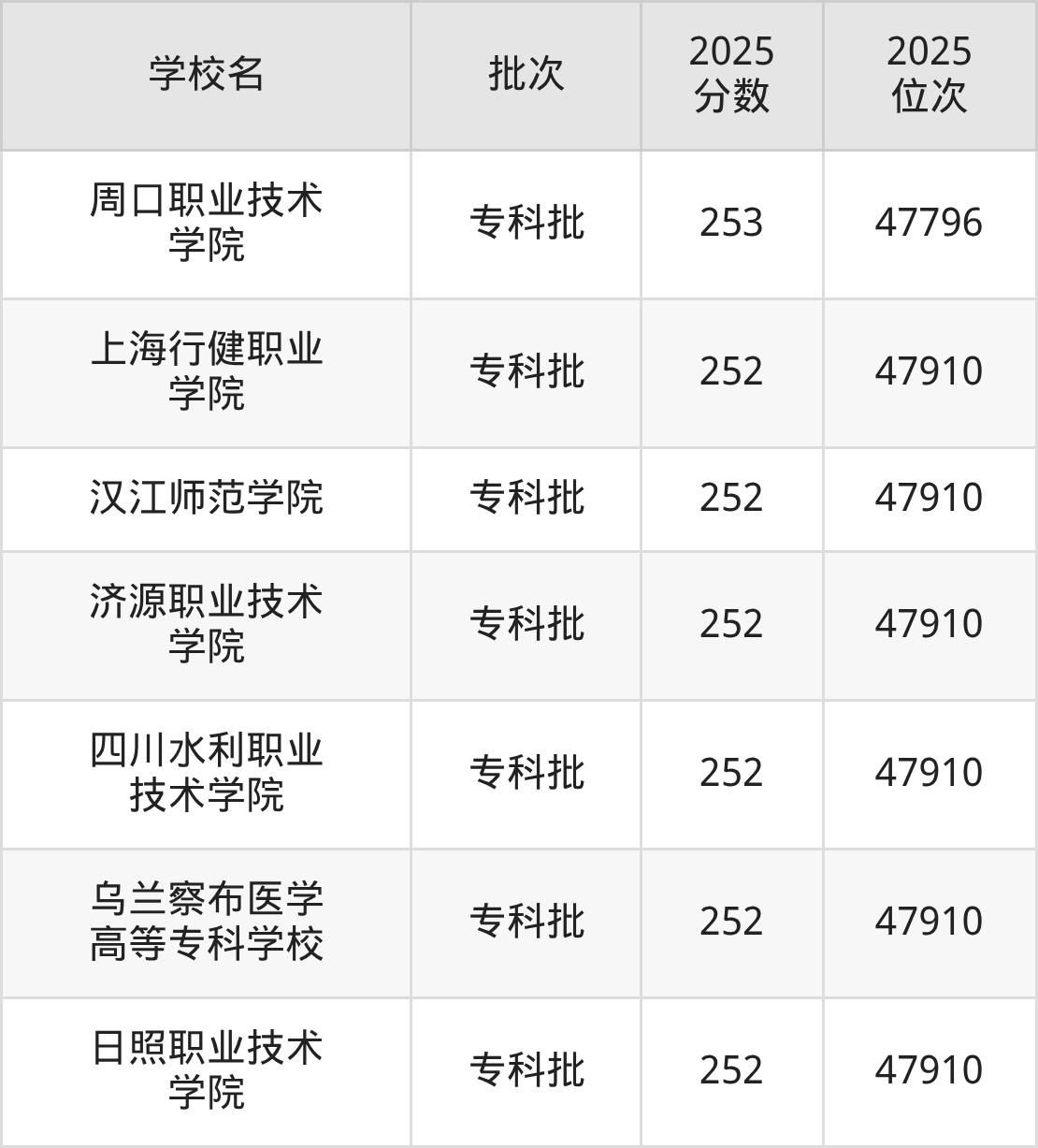 这些都是2026年高考理科47361名~47474名考生可以报考的大学,更多学校名单如下表所示: