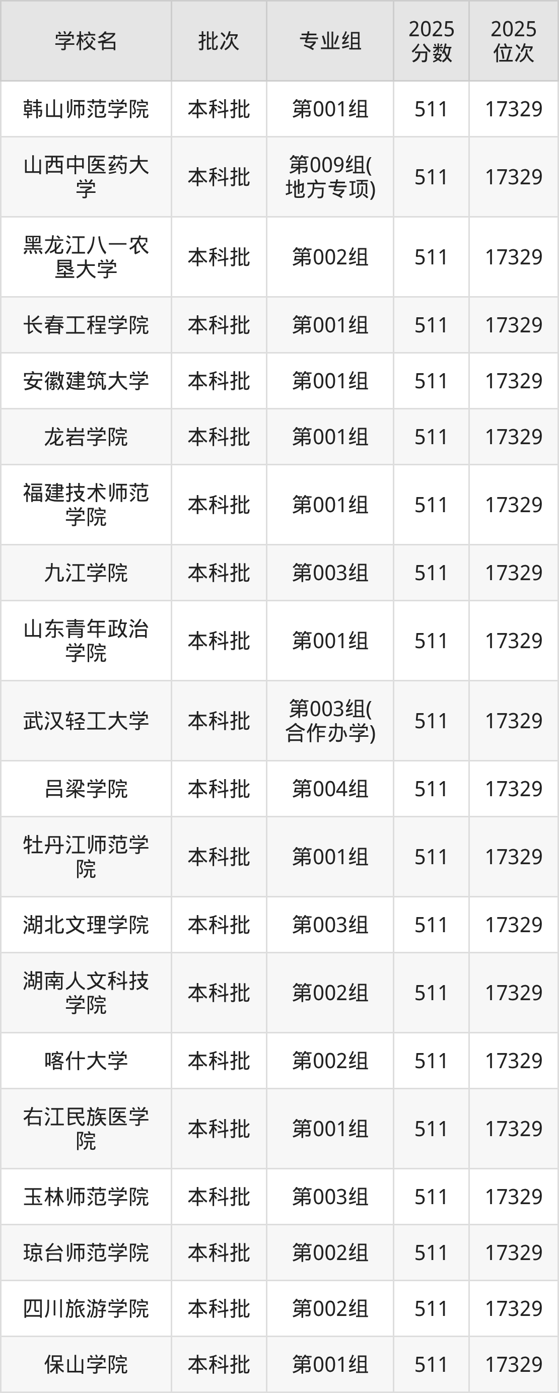 这些都是2026年高考历史类17575名~17830名考生可以报考的大学,更多学校名单如下表所示: