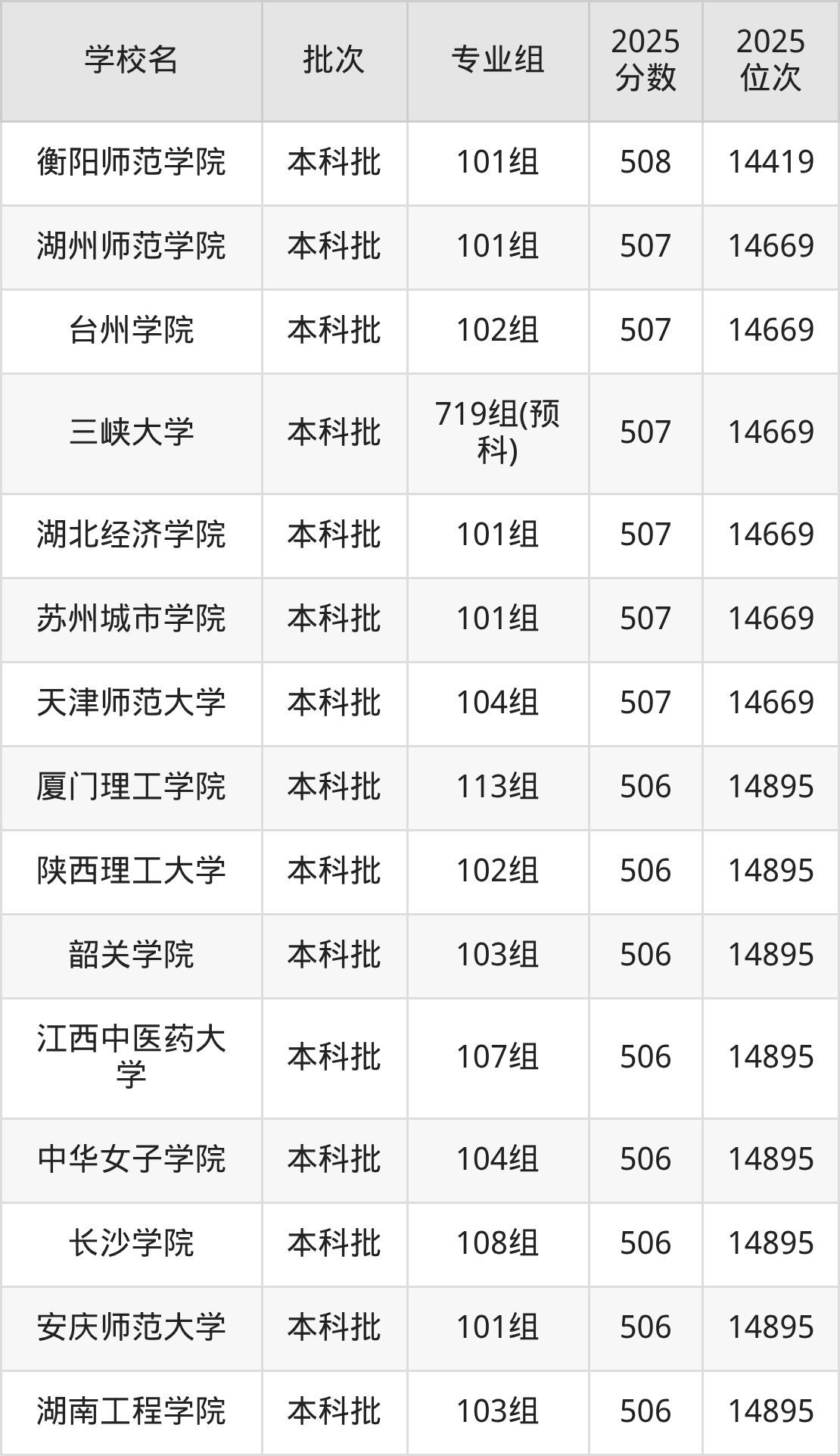 这些都是2026年高考历史类14179名~14419名考生可以报考的大学,更多学校名单如下表所示: