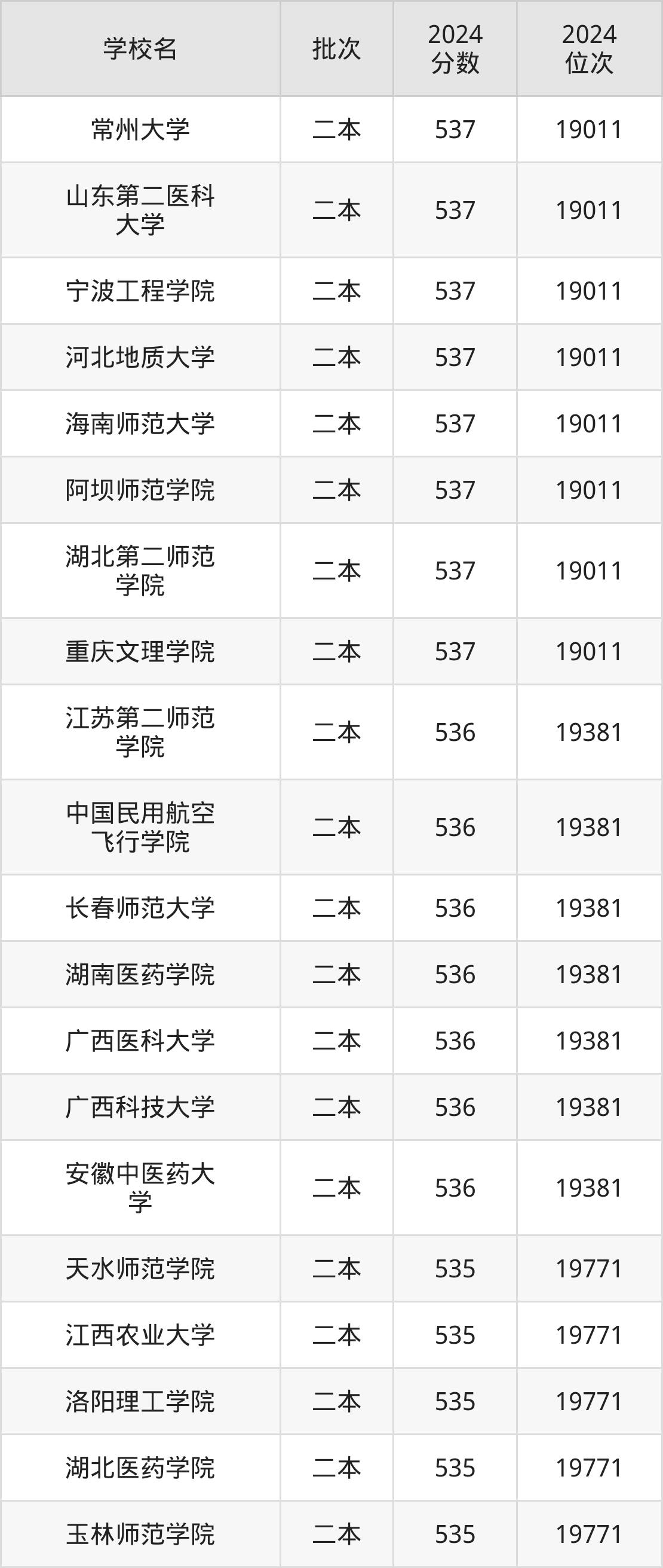 这些都是2025年高考文科19382名~19771名考生可以报考的大学,更多学校名单如下表所示: