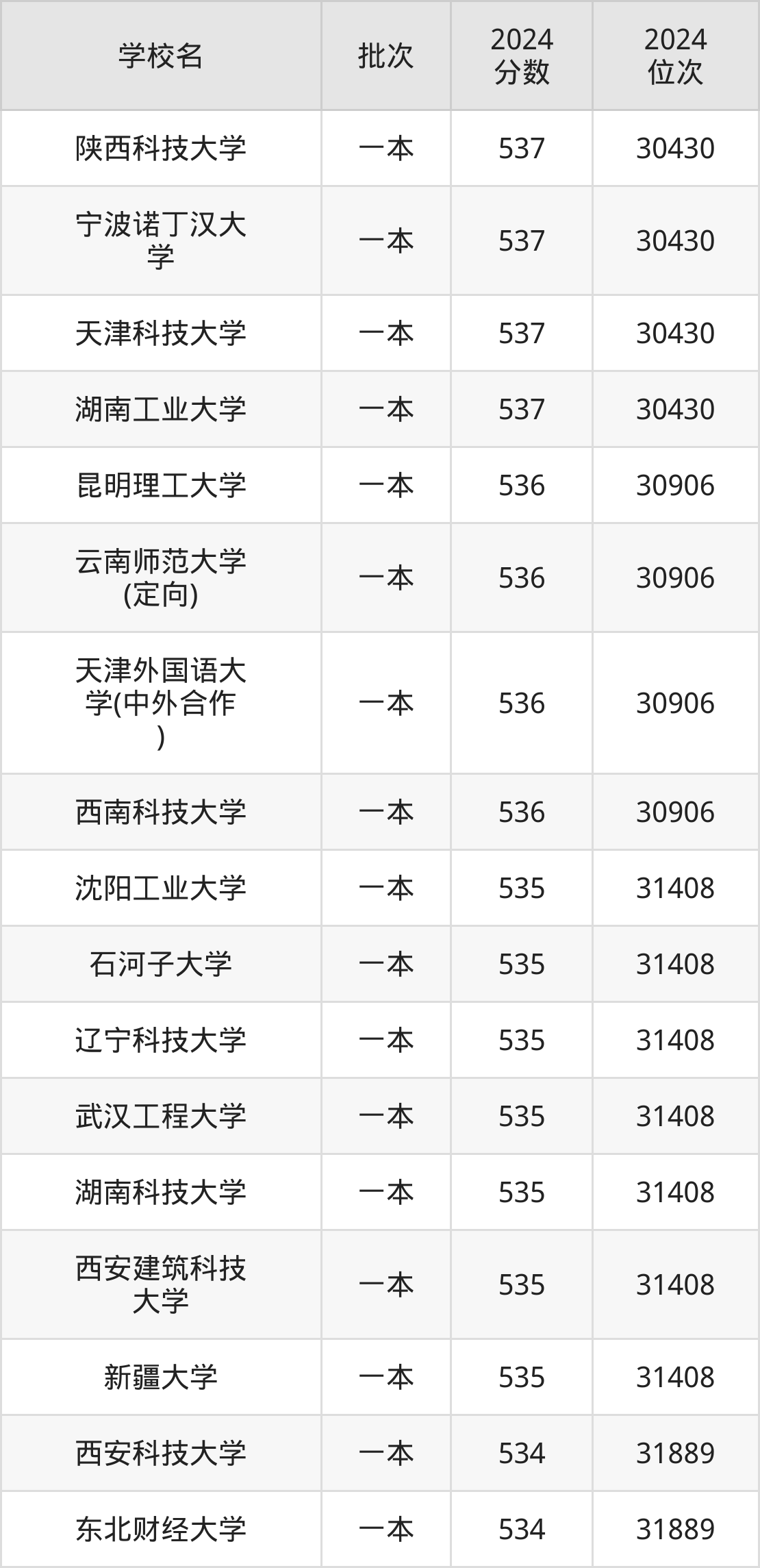 2024年云南高考理科535分(30907名~31408名)能上的大学有辽宁科技大学、沈阳工业大学、武汉工程大学、湖南科技大学等。