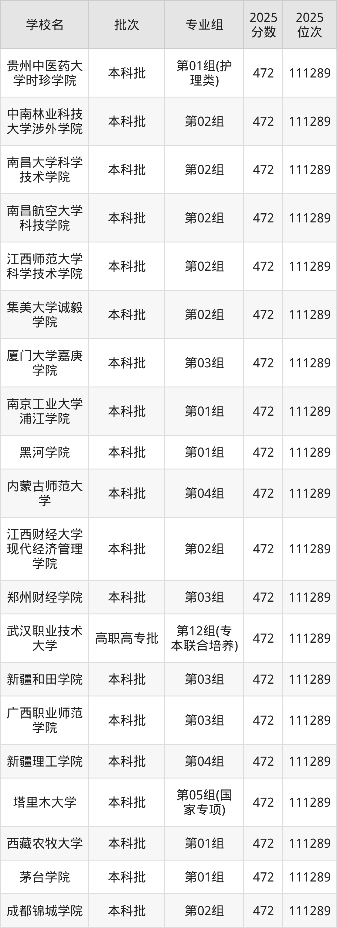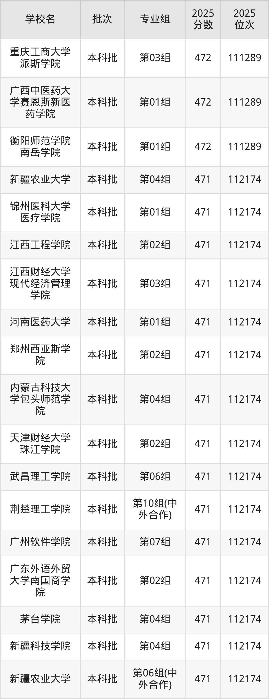 2025年湖北高考物理类471分(111290名~112174名)能上的大学有荆楚理工学院第10组(中外合作)、武昌理工学院第06组、天津财经大学珠江学院第02组、内蒙古科技大学包头师范学院第04组等。