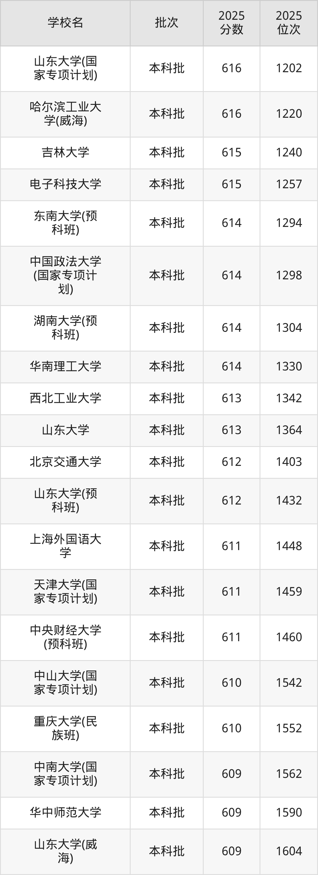 由于高考录取分数线历年波动较大,因此本文以该分数对应的位次排名为大家整理能上的大学名单。