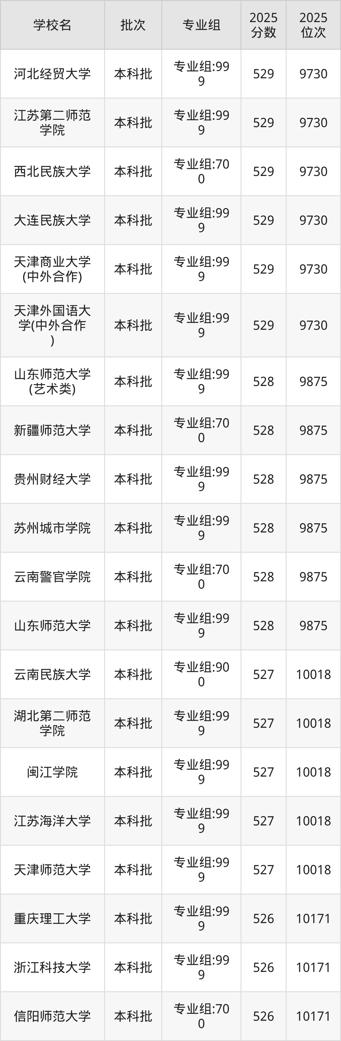 这些都是2026年高考历史类10172名~10316名考生可以报考的大学,更多学校名单如下表所示:
