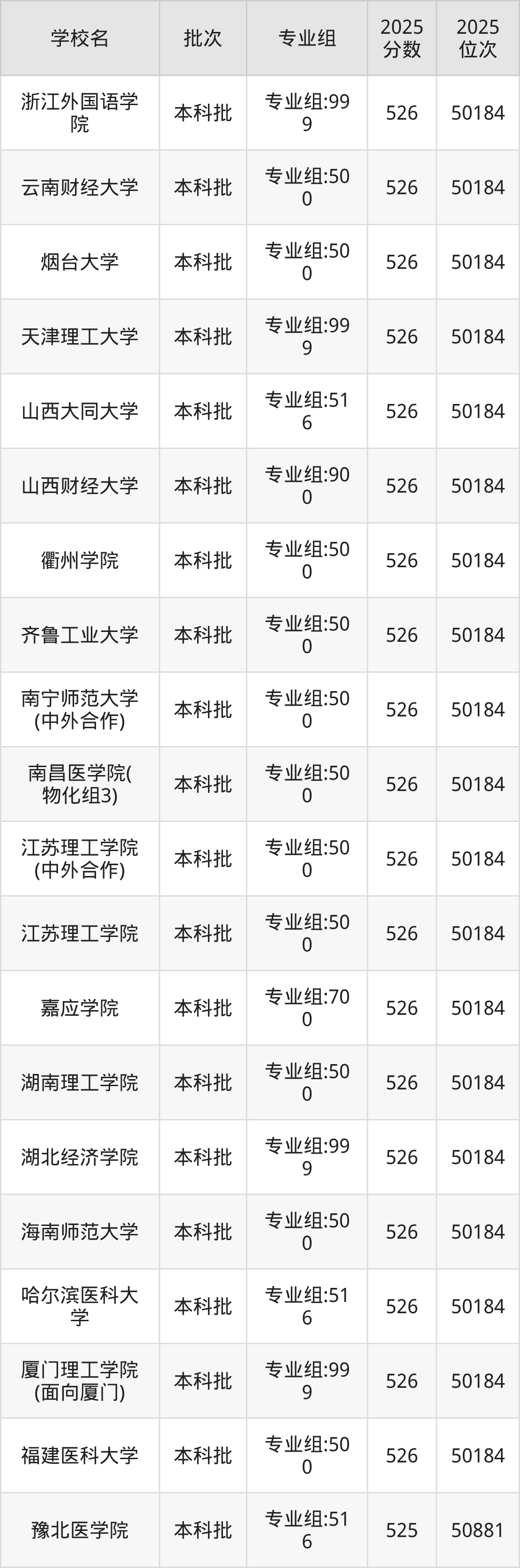 这些都是2026年高考物理类50185名~50881名考生可以报考的大学,更多学校名单如下表所示: