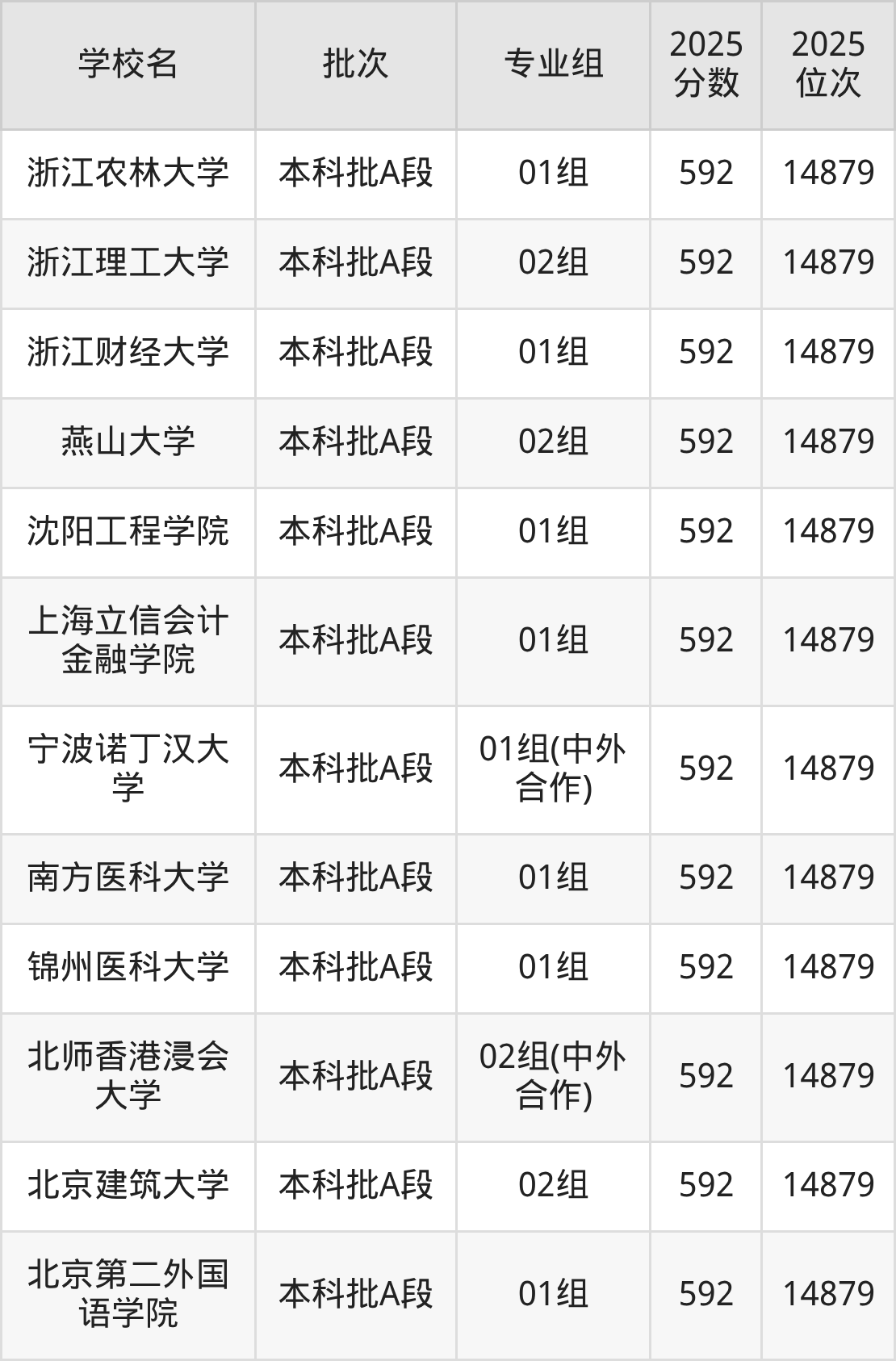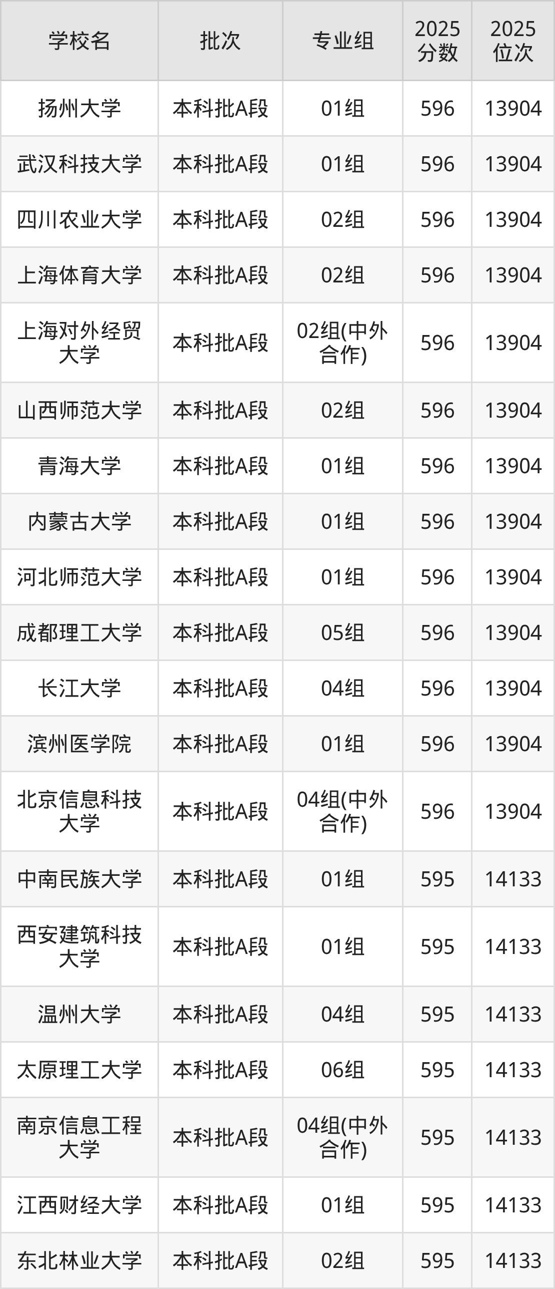 这些都是2026年高考14379名~14616名考生可以报考的大学,更多学校名单如下表所示: