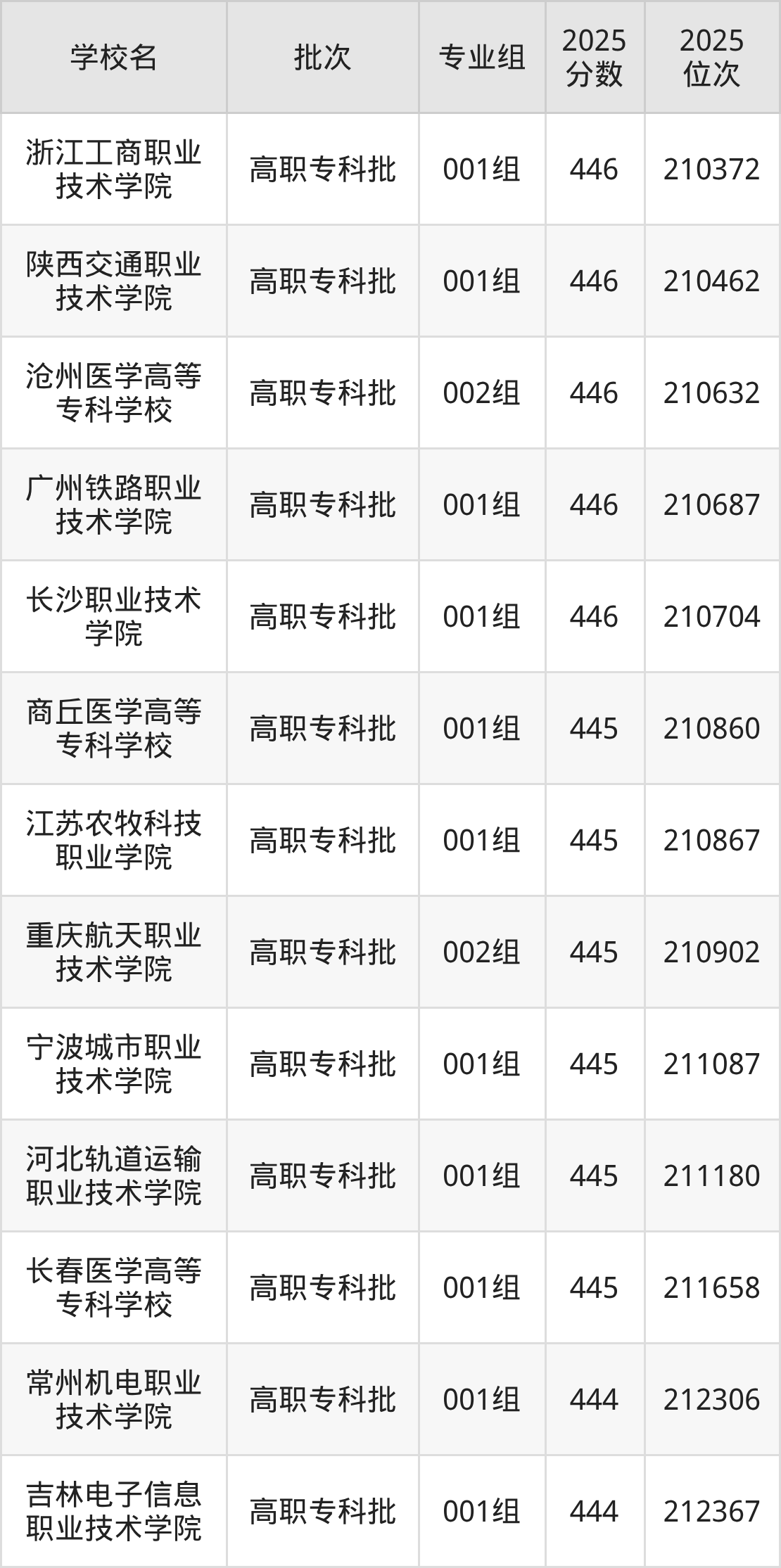 2025年安徽高考物理类445分(210730名~211972名)能上的大学有长春医学高等专科学校001组、重庆航天职业技术学院002组、河北轨道运输职业技术学院001组、江苏农牧科技职业学院001组等。