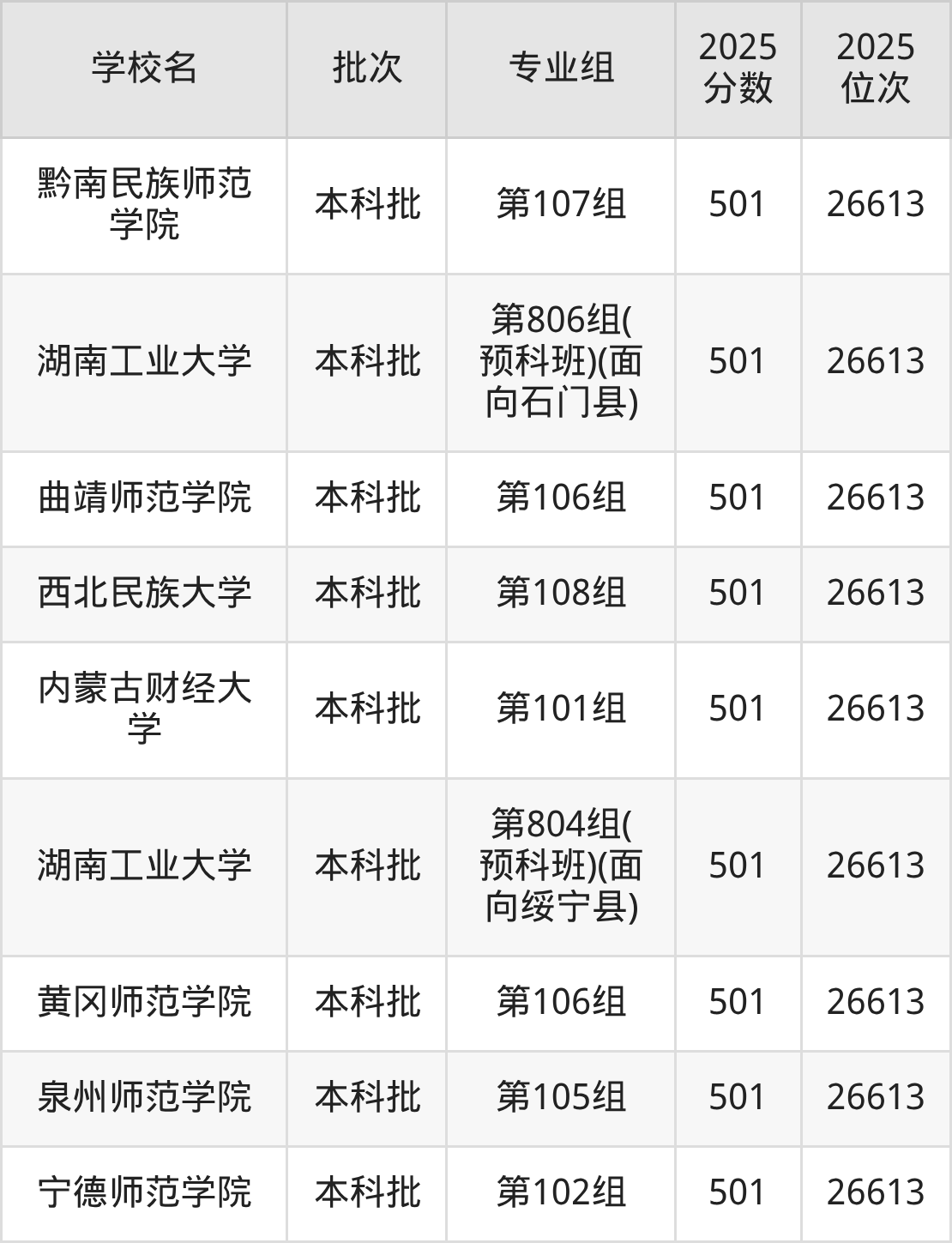 这些都是2026年高考历史类25781名~26209名考生可以报考的大学,更多学校名单如下表所示: