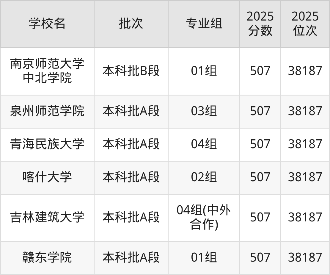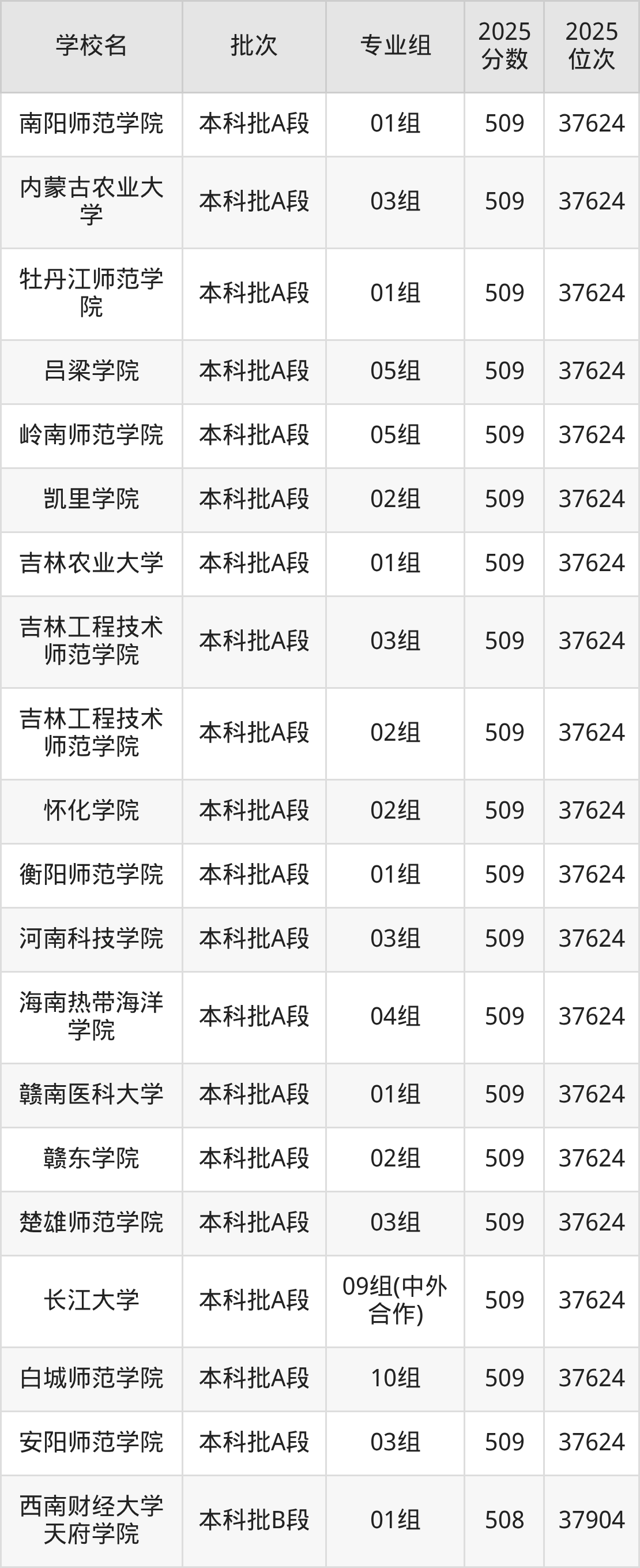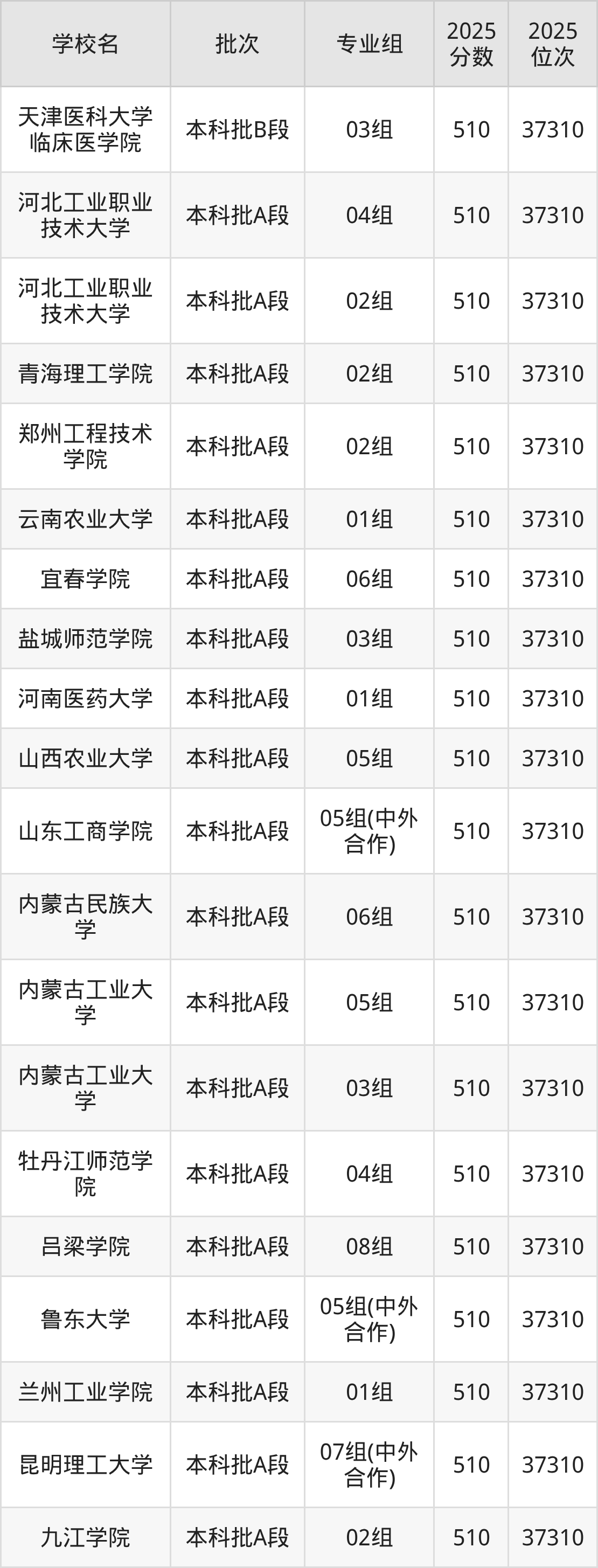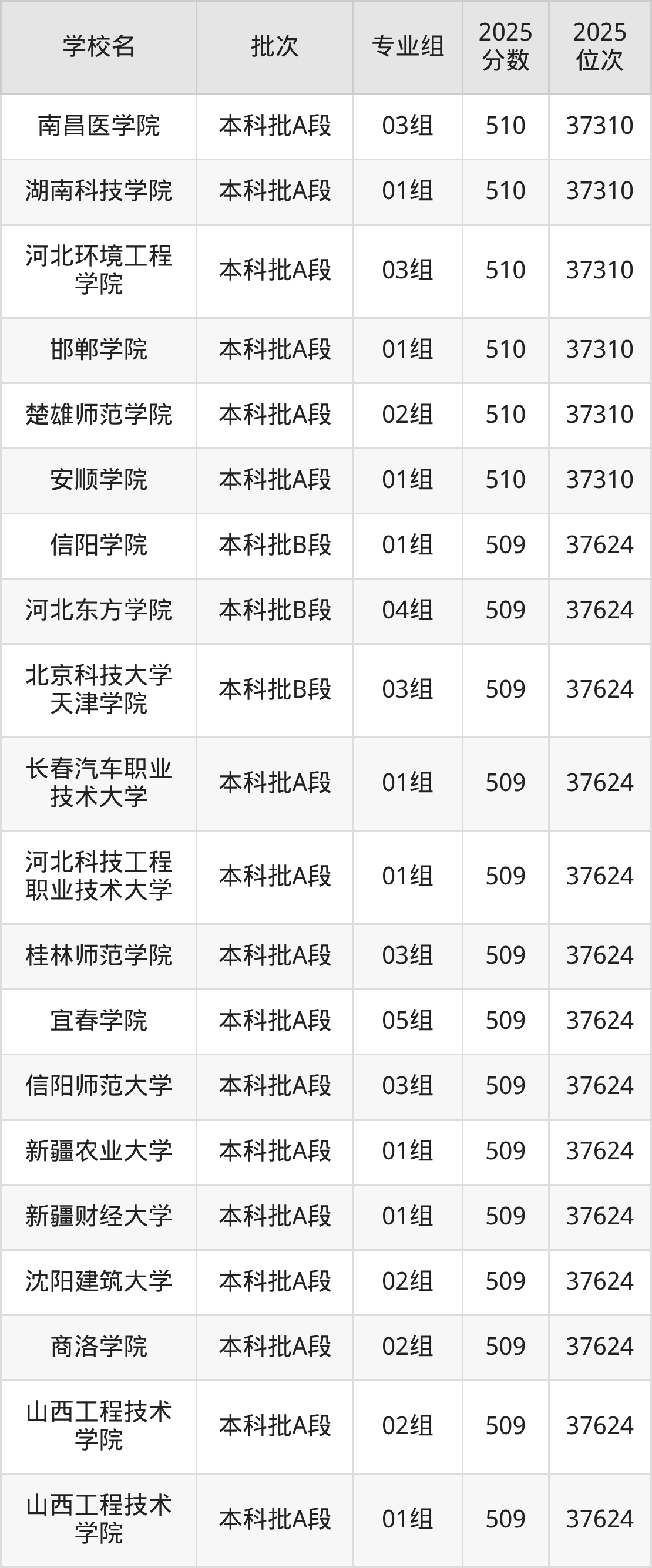 这些都是2026年高考37625名~37904名考生可以报考的大学,更多学校名单如下表所示: