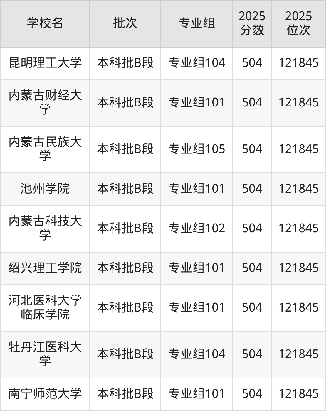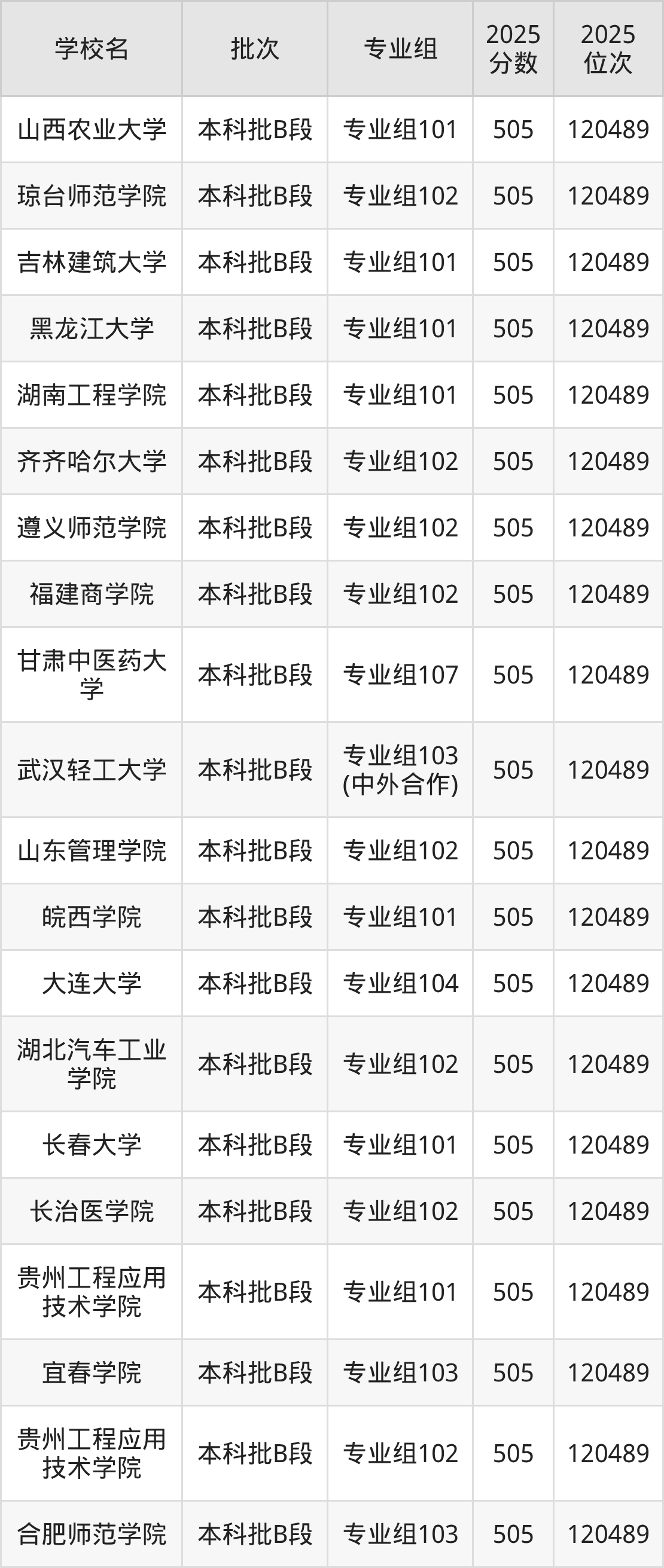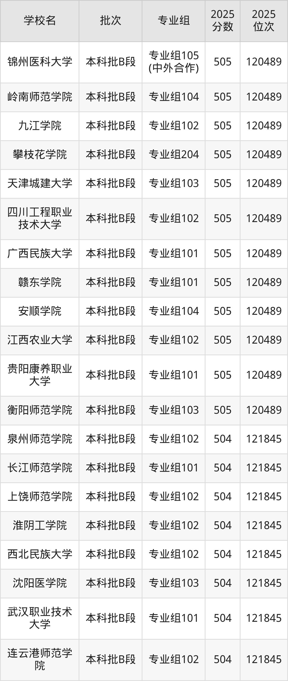 这些都是2026年高考物理类120490名~121845名考生可以报考的大学,更多学校名单如下表所示: