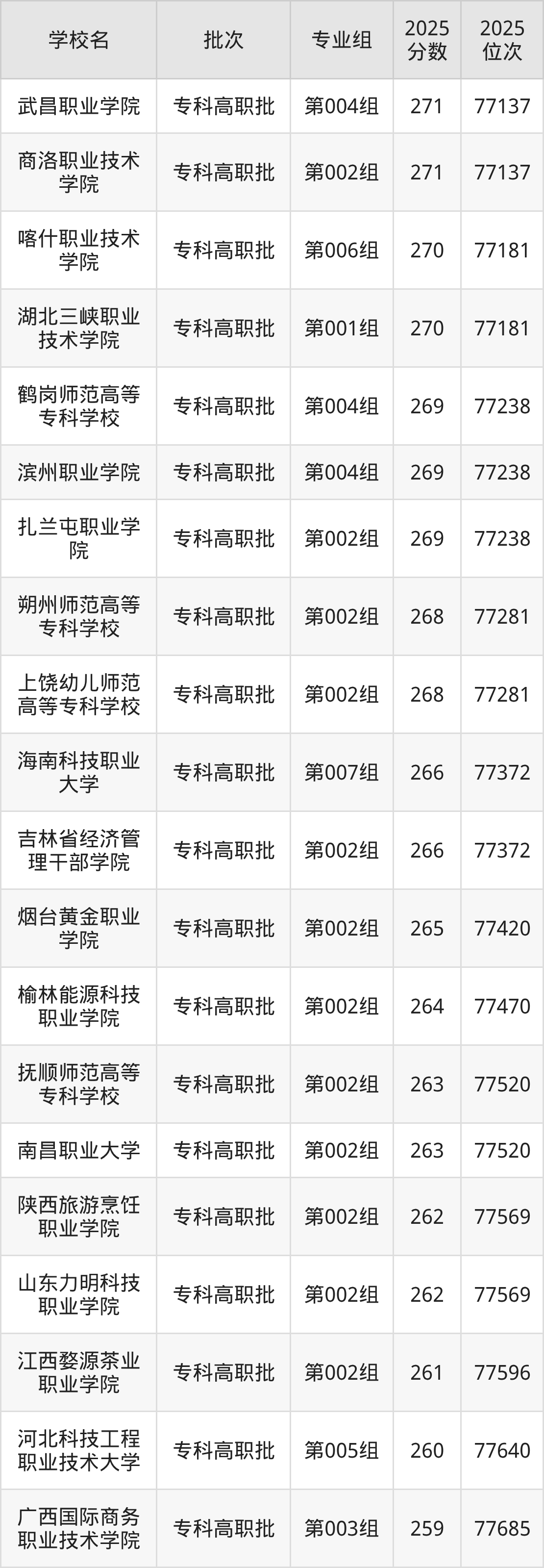 2025年吉林高考物理类260分(77597名~77640名)能上的大学有河北科技工程职业技术大学第005组。