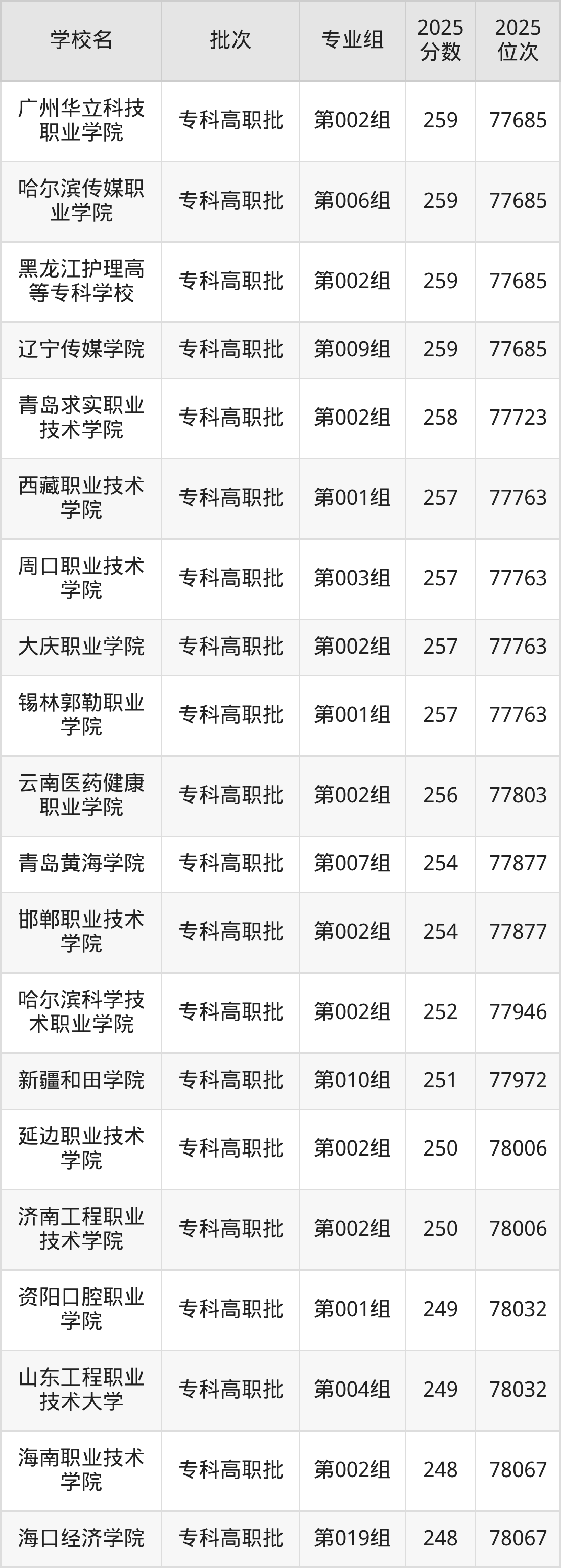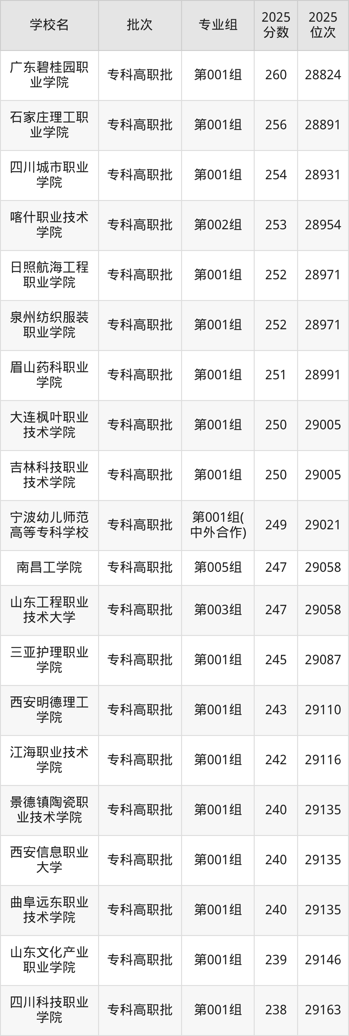 2025年吉林高考历史类260分(28803名~28824名)能上的大学有广东碧桂园职业学院第001组。