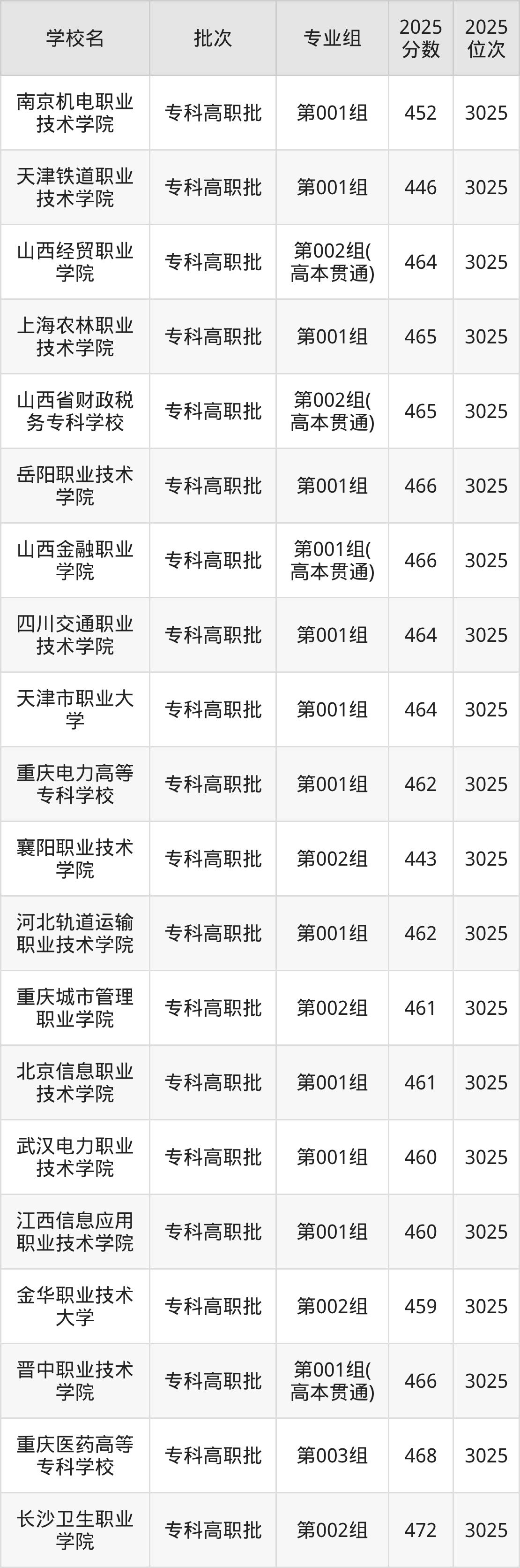 这些都是2026年高考历史类3413名~3609名考生可以报考的大学,更多学校名单如下表所示:
