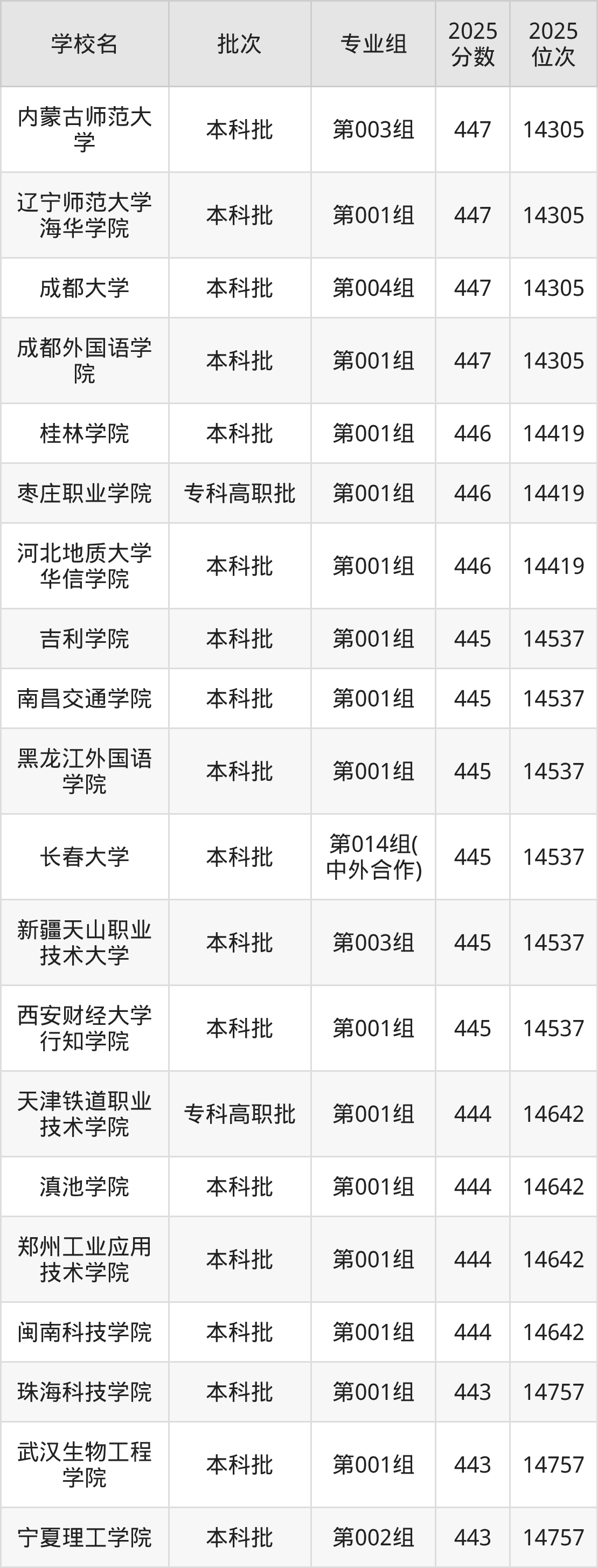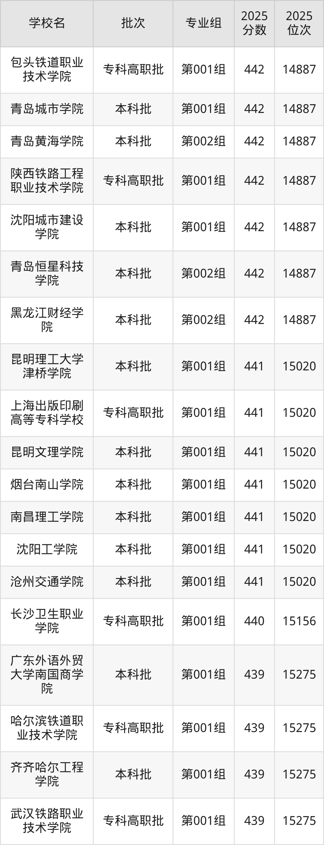 2025年吉林高考历史类442分(14758名~14887名)能上的大学有沈阳城市建设学院第001组、黑龙江财经学院第002组、青岛恒星科技学院第002组、青岛黄海学院第002组等。
