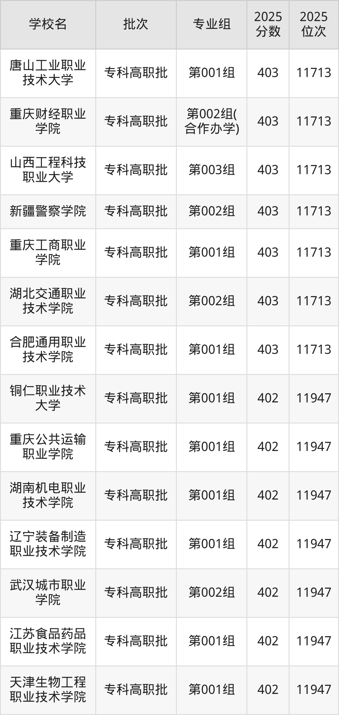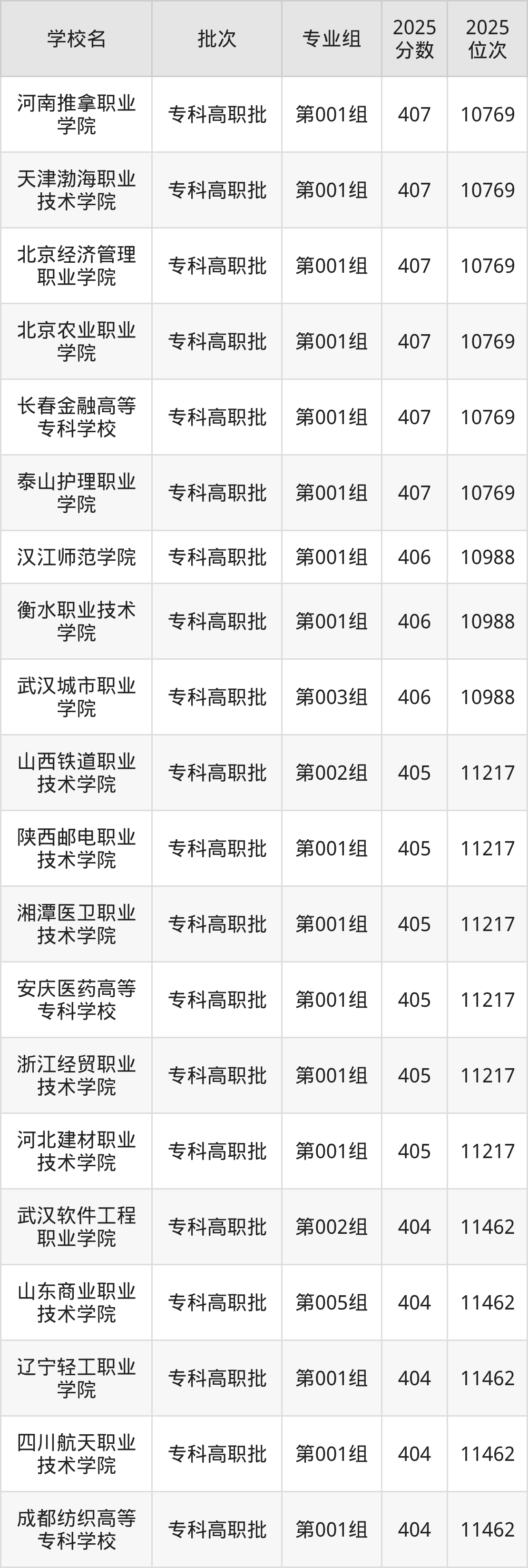 2025年山西高考历史类404分(11218名~11462名)能上的大学有辽宁轻工职业学院第001组、山东商业职业技术学院第005组、武汉软件工程职业学院第002组、成都纺织高等专科学校第001组等。