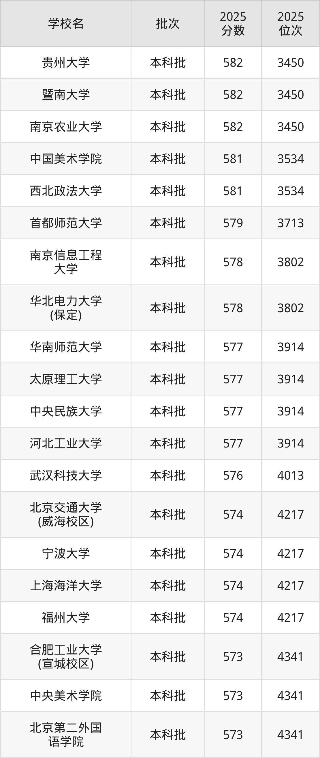 由于高考录取分数线历年波动较大,因此本文以该分数对应的位次排名为大家整理能上的大学名单。