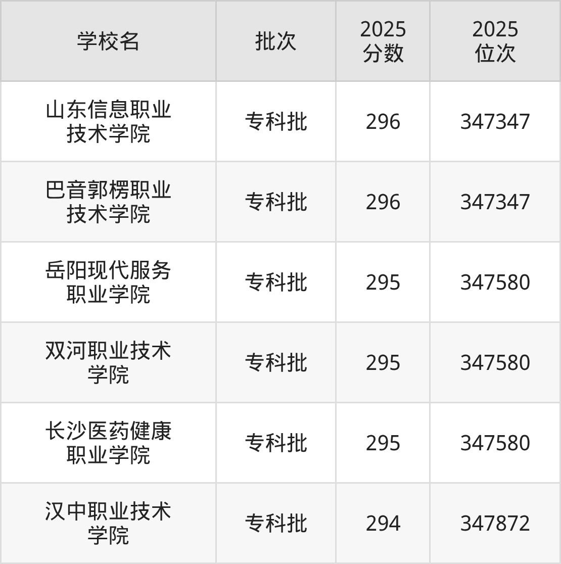 2025年河北高考物理类295分(347348名~347580名)能上的大学有长沙医药健康职业学院、岳阳现代服务职业学院、双河职业技术学院。